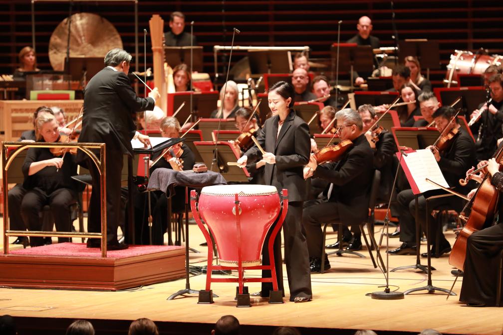 上海交响乐团打击乐演奏家付艺霏当晚在《夜深沉》中演奏中国大鼓,又在《茉莉花》中演奏西方的定音鼓。“不管是中国的鼓,还是西方的鼓,在表演中都可以找到共通点。”她说。