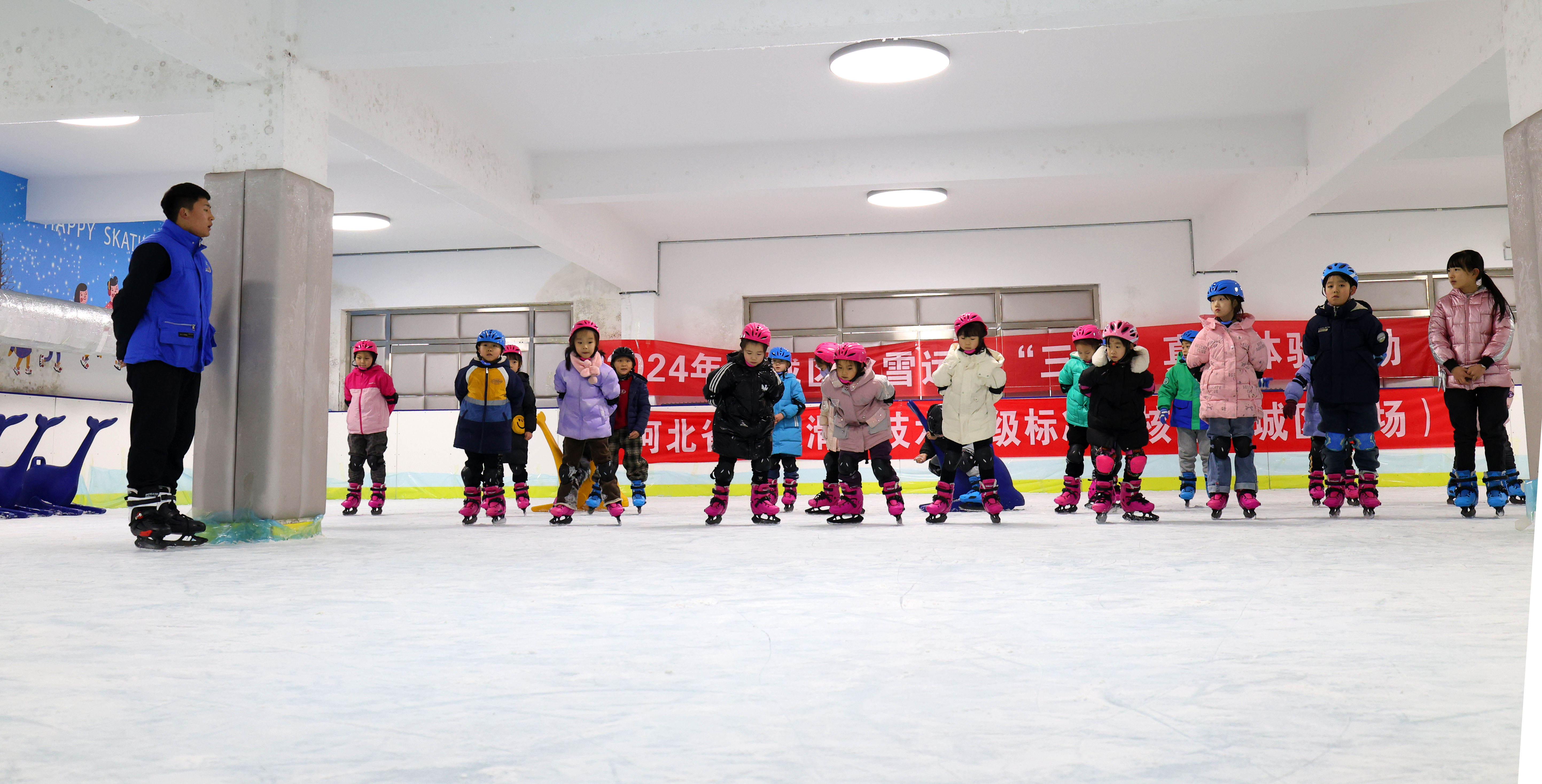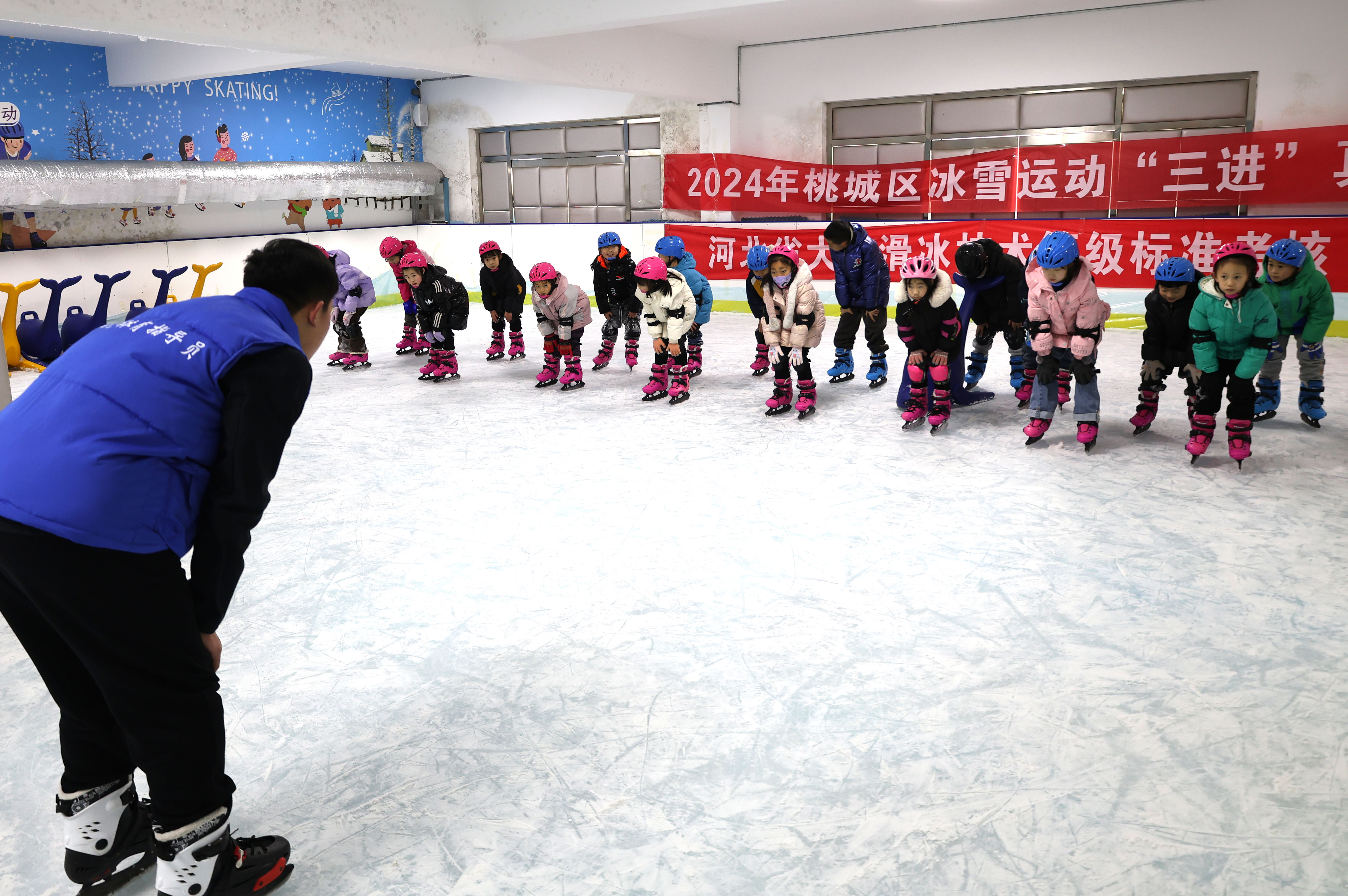 当天下午3时,参加冰雪运动体验的孩子们在家长带领下来到桃城区真冰轮滑球场。专业教练为参与体验的学生讲解站姿、摆臂、蹬冰、滑行等滑冰知识,并指导学生亲身体会在真冰场地活动的感受。孩子们身着护具,穿上冰鞋,走上冰场,或练习动作要领,或自由结组滑行,感受着冰雪运动的魅力。