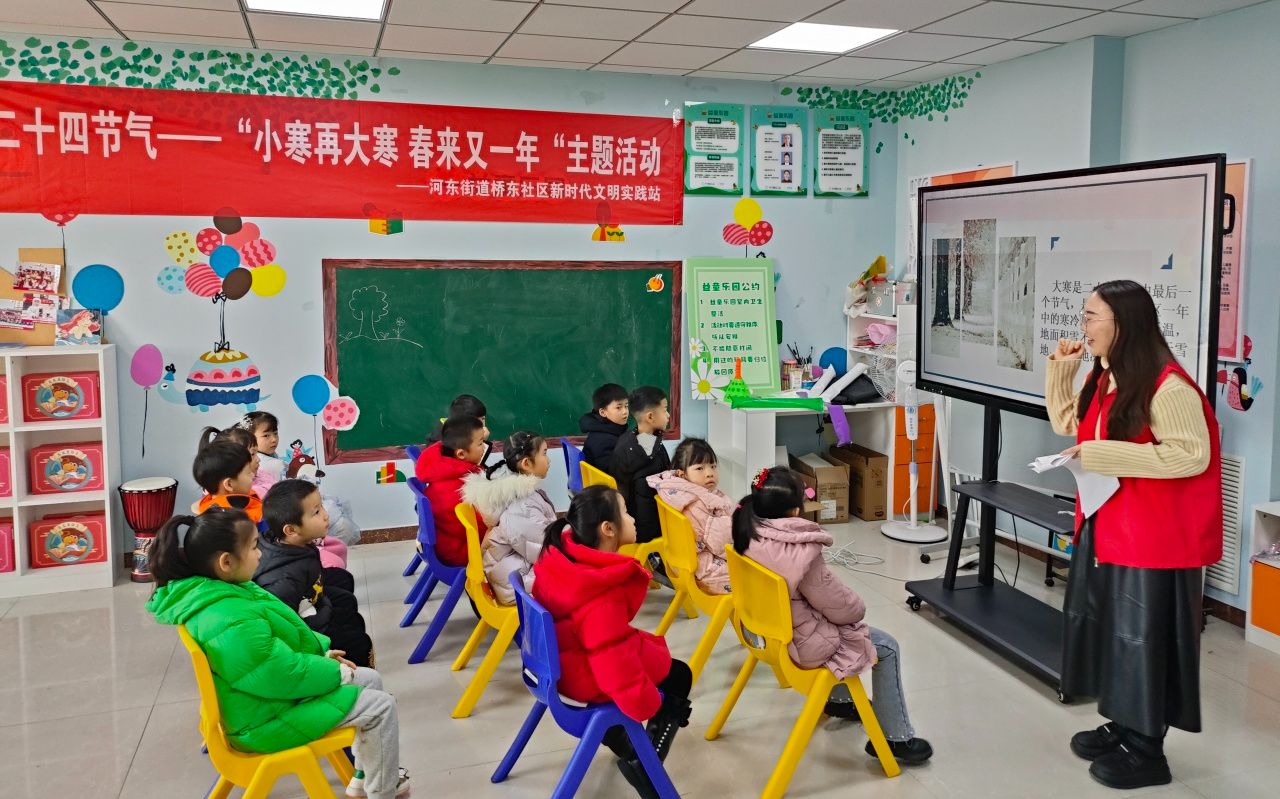 1月22日,衡水市桃城区桥东社区携手依云湾育才第十幼儿园开展“二十四节气——小寒再大寒 春来又一年”主题活动,让辖区未成年人更好地了解节气习俗,感受中国传统文化内涵和浓厚氛围。