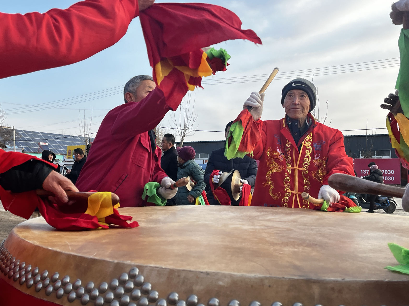 当日上午9时许,赵家圈镇集贸市场一派热闹景象。舞台上,架鼓、大铙、低音锣等乐器手相互配合,奏响激昂的“交响乐曲”。演出人员身穿喜庆艳丽服装,踩着振奋的鼓点欢快起舞,将喜悦祥和的气氛以及美好的祝福传递给观众们。舞台下,桃城区农业农村局摆起了农技科普展板,工作人员围绕农业技术、政策以及科技科普等向过往群众进行宣传。