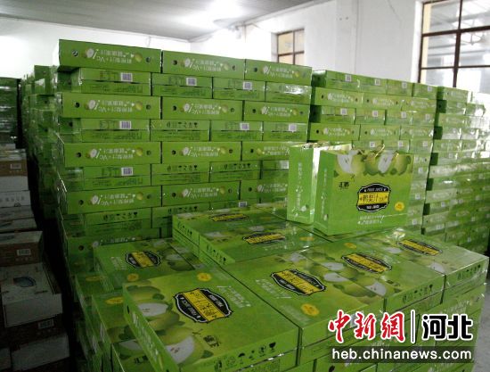 阜城县霞口镇一鸭梨汁生产企业成品库一角。 崔贤飞 摄