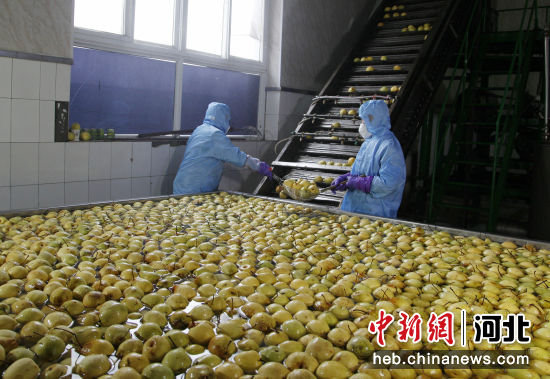 阜城县霞口镇一鸭梨汁生产企业车间一角。崔贤飞 摄