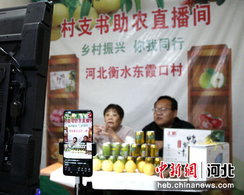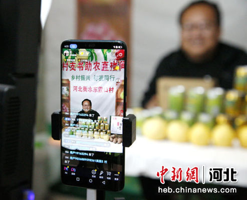 日前,走进河北省阜城县霞口镇东霞口村党支部书记李学华家中,他正在网上直播向网友推荐家乡特产。
