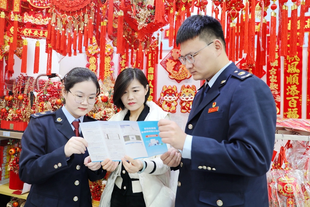 在衡水市一商超内,春联、灯笼、中国结等年货琳琅满目。桃城区税务局组织“税小桃”志愿者带着税费政策来到这里,就个税附加扣除填报、个体工商户税费优惠、社保费缴纳等方面内容对商户、广大市民进行手把手辅导,并送去相关资料,浓了年味、暖了民心。