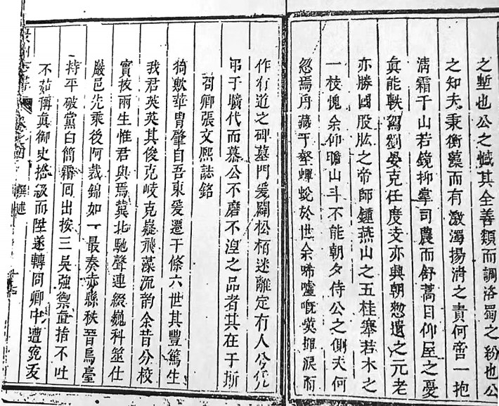 枣林张氏明太仆寺正卿张文熙墓铭(部分),清康熙版《景州志》截图。