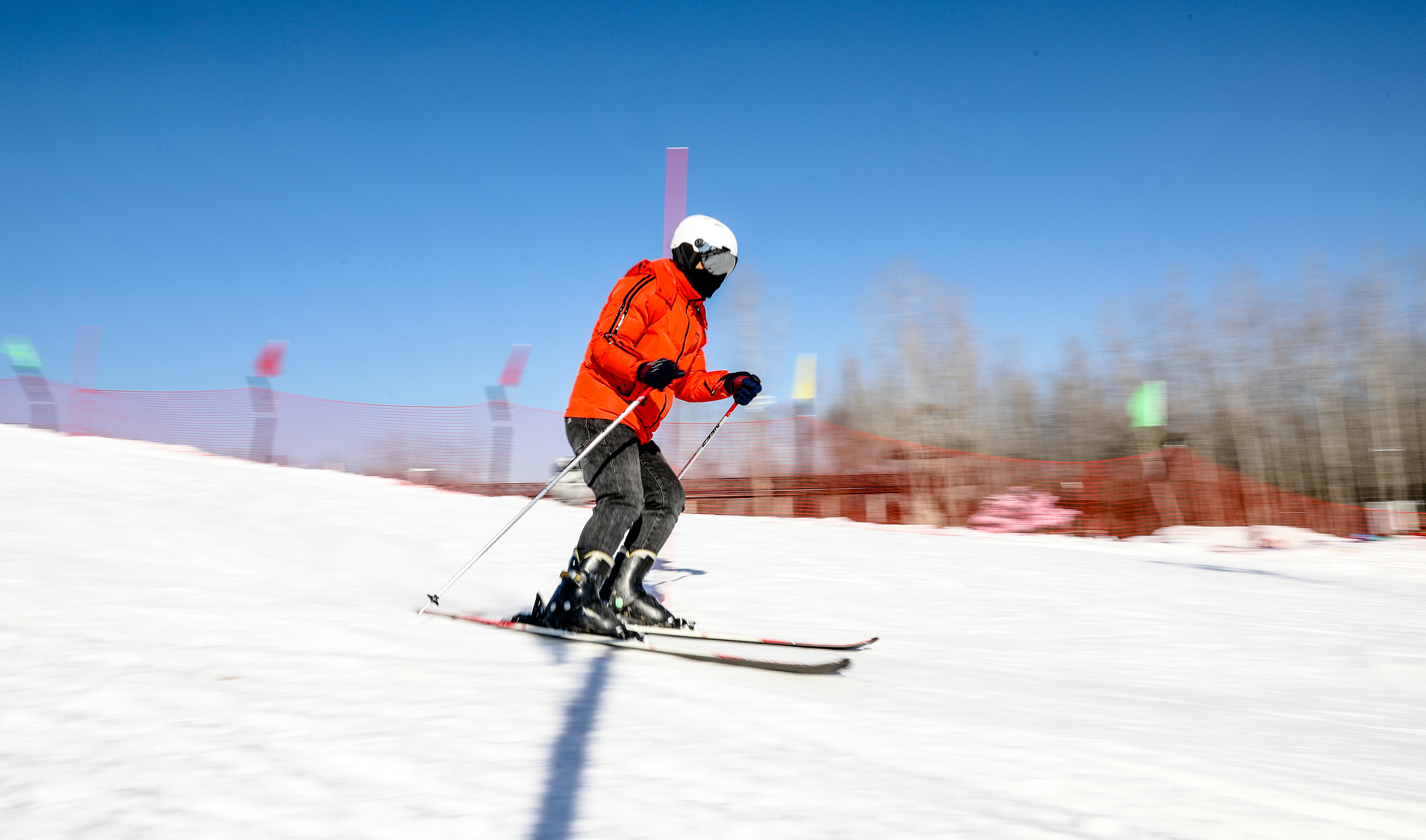 双板滑雪是一项广受欢迎的冬季运动。参与者脚踏滑雪板、手撑滑雪杖,从高坡上飞旋而下。通过掌握两块滑雪板的动作组合,一路辗转腾挪,完成各种灵动、飞扬的花式动作。“2022年的北京冬奥会,激起了大家对冰雪运动的热情,至今一直是有增无减。”双板滑雪参赛运动员、深州市代表队的刘晓静说,“它对身体的力量和柔韧性要求很小,4岁到80岁的健康人群都可以参加。我十分喜欢这项运动。也希望通过参加赛事和各种展示活动把这份热情传递给更多的人,让大家都爱上冰雪运动、参与冰雪运动,感受寒冬里的激情与快乐。”