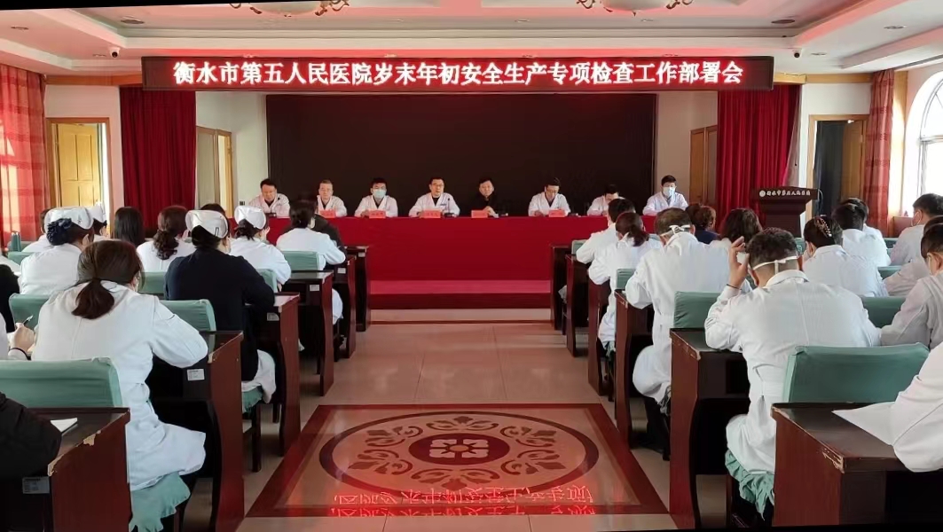 1月25日下午,春节来临之际,衡水市第五人民医院召开岁末年初安全生产专项检查工作部署会。桃城区卫健局相关领导、衡水五院班子成员及院内职能部门中层干部全部到场参加。