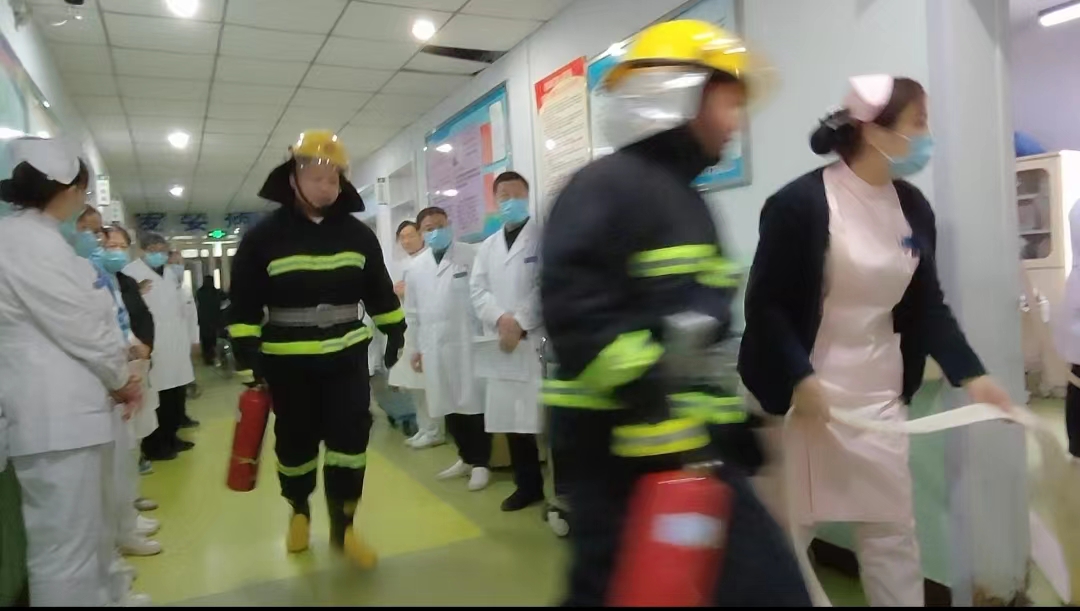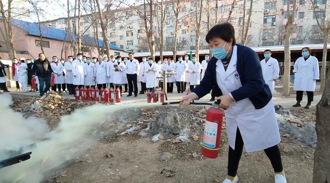 会后,全体人员到妇一科和停车场,先后进行了消防应急演练和消防实操演练,院党委书记韩非和院长国义民在现场给予点评。