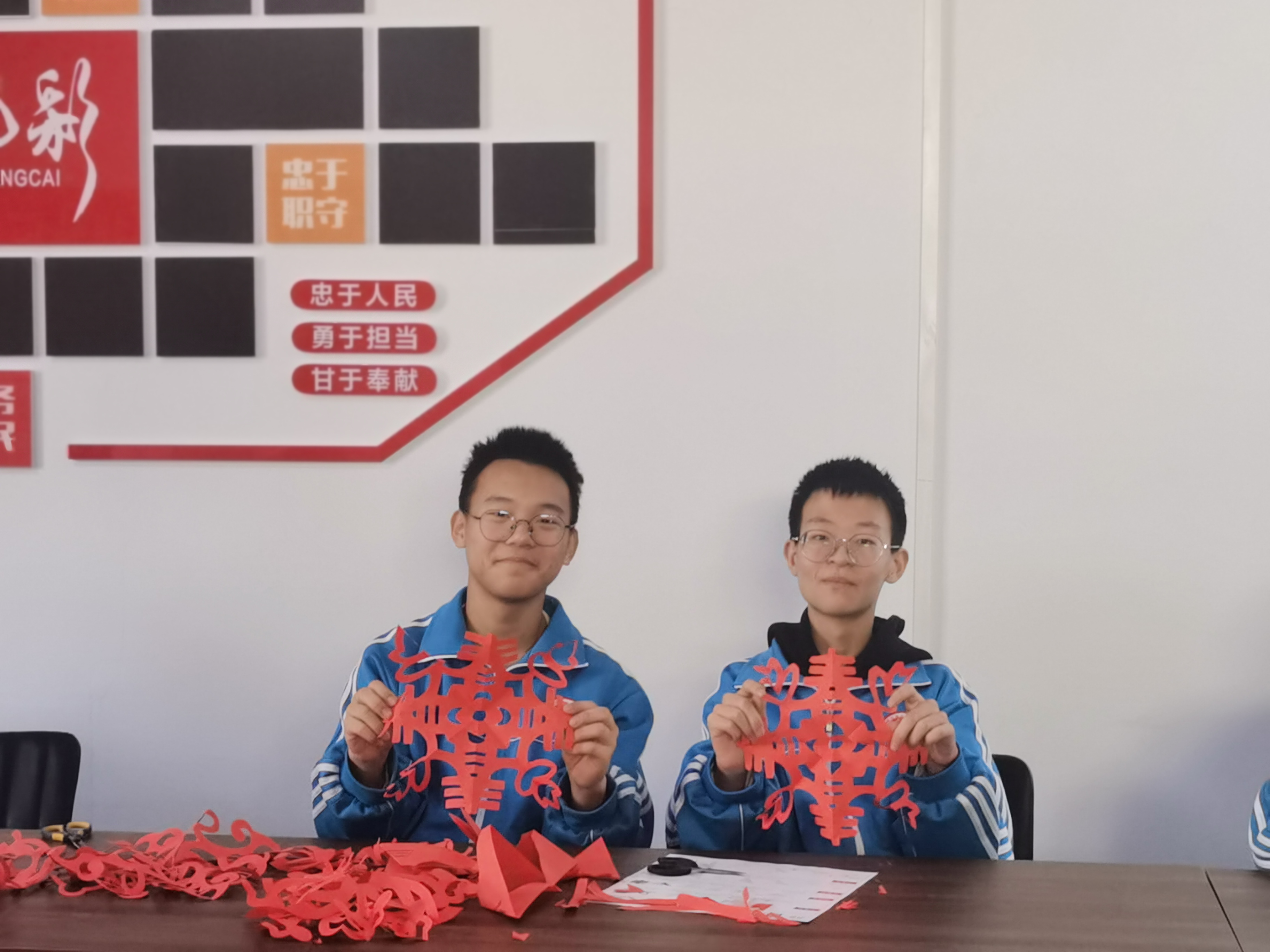 “剪纸艺术历史悠久,贴窗花也是我们的传统习俗。我们要把剪好的窗花送给工作在一线岗位的叔叔阿姨们,借着窗花的美好寓意,为他们送上新年祝福。”七年级学生李悦茹开心地说道。随后七年级学生马天成也笑着说:“今天我非常开心,既学习了传统文化,又感受到了浓浓年味儿。”
