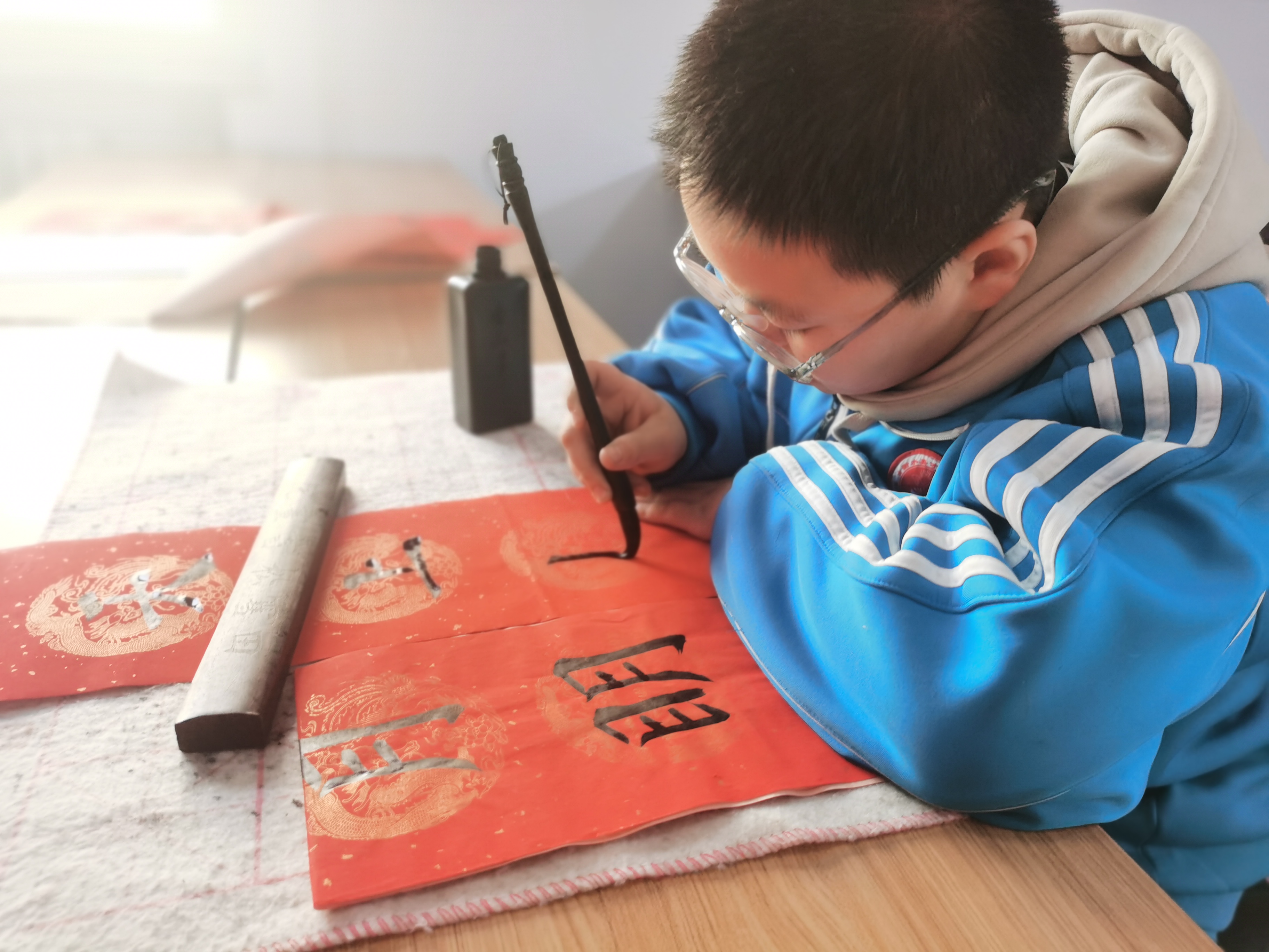 活动现场,孩子们也忙的不亦乐乎,折叠、阳刻、刺孔……孩子们手持剪刀化身剪纸大师,一把把剪刀在他们手指间飞舞,谈笑间一幅幅活灵活现的剪纸图案便呈现在手中。“我剪的‘福’字,希望大家都能生活幸福……”“我剪的‘春’字,春节将近,祝大家新春快乐……”孩子们手持作品,说着心中的祈愿。