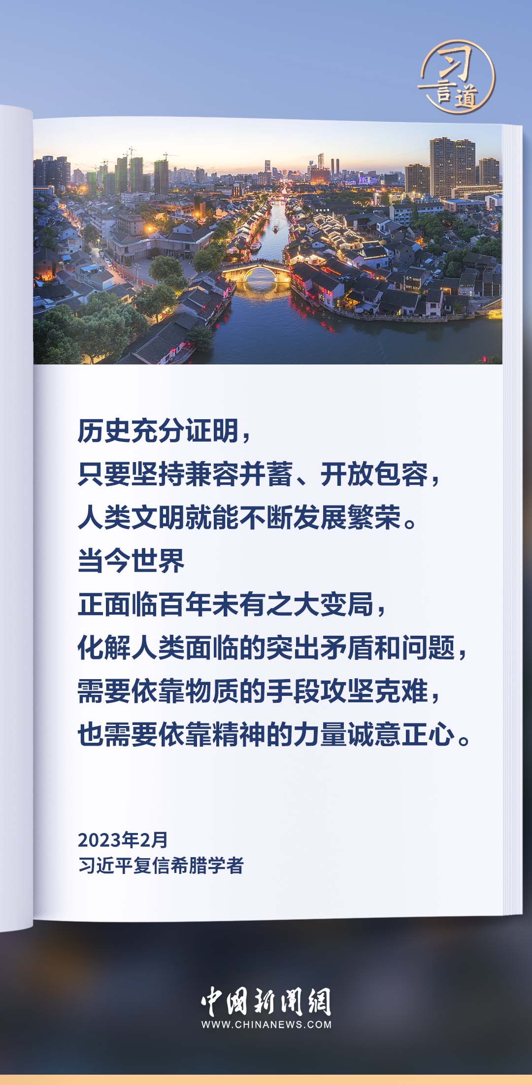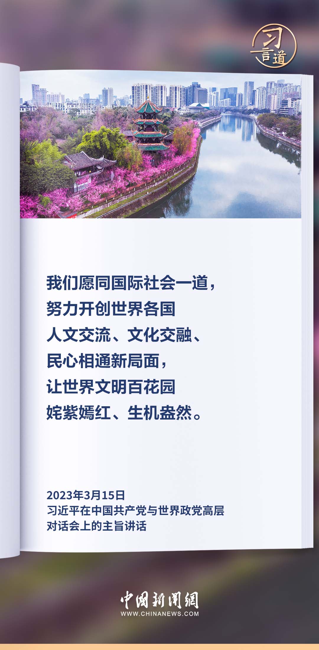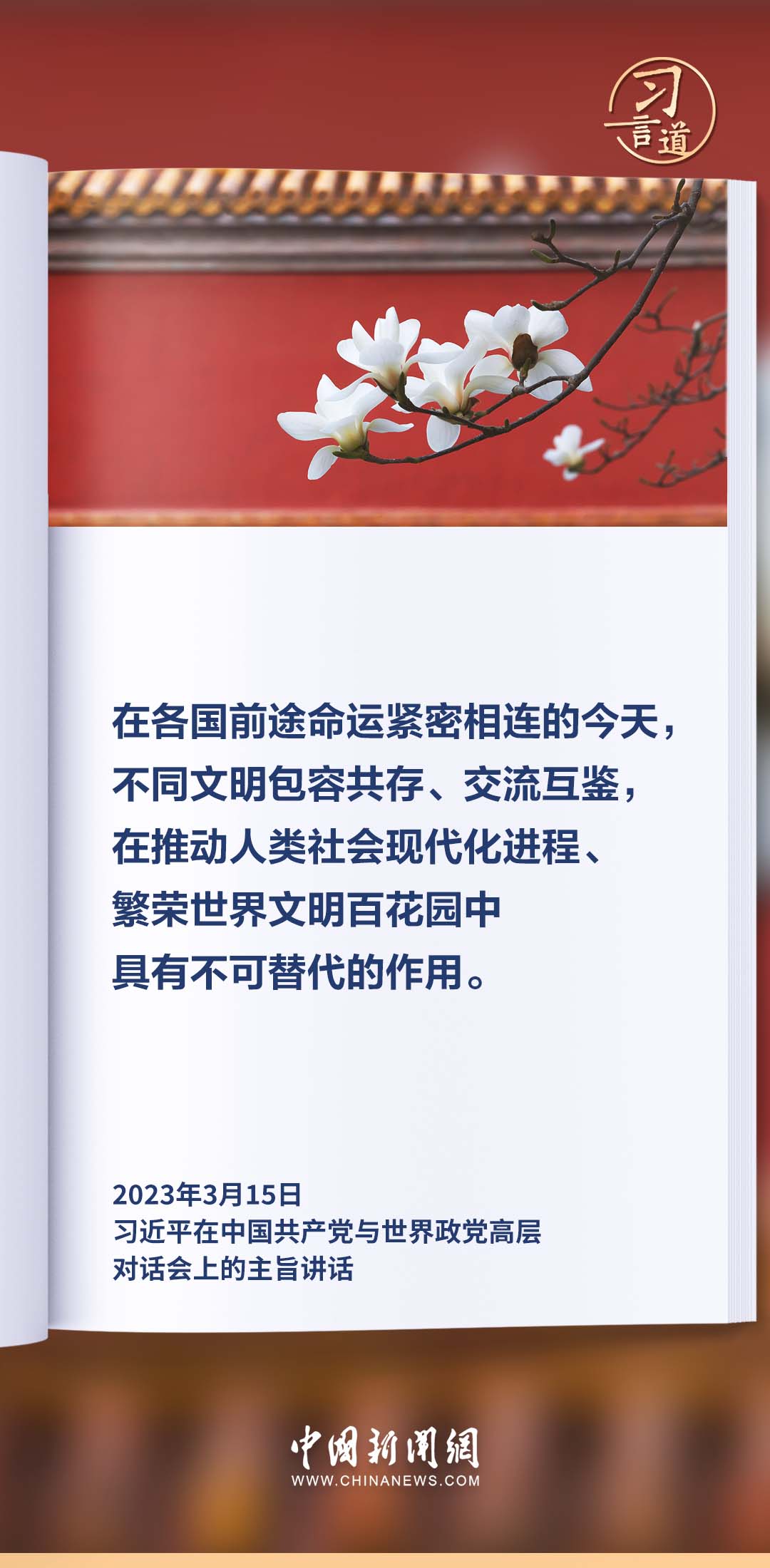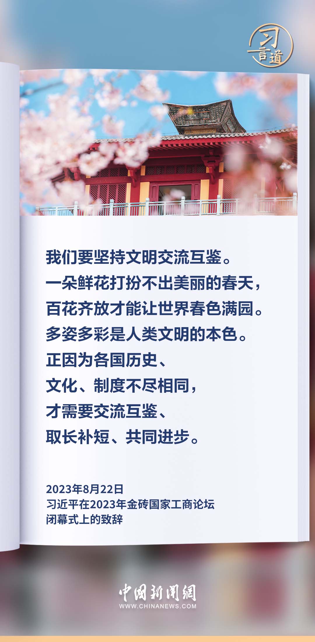 文明因多样而交流,因交流而互鉴,因互鉴而发展。习近平总书记高度重视不同文明之间的交流互鉴,多次作出重要论述。编辑:姜长淼 来源:中国新闻网 点赞 +1 微博 微信 我要评论 发布 相关推荐 习言道丨与中国同行就是与机遇同行 要闻 2天前 天天学习|以自然之道 养万物之生 要闻 5天前 习言道|放下官架子、回归革命军人本色 要闻 6天前 【家国永念】习言道|新时代是需要英雄并一定能够产生英雄的时代 要闻 04-07 【家国永念】习言道|永远铭记烈士们的牺牲和奉献 要闻 04-06 【家国永念】习言道|实现我们的目标,需要英雄,需要英雄精神 要闻 04-06 习言道|总书记的植绿坚守 要闻 04-04 习言道|连续14年参加首都义务植树,总书记关切这件大事 要闻 04-03 热门 一天 三天 一周 1 《互联网平台价格行为规则》正式实施 明确禁止“大数据杀熟” 2 衡水65户农户入选今年首批省级装配式农房示范户 入选数量位居全省第三 全市累计申报示范户已超2500户 3 春暖湖城 衡水奥体公园迎来踏青健身热 4 【衡视频】春日游园 与动物共赏人间美好 5 全国首批试点收官 安平丝网产业提质成效显著 6 衡水十三中这场展览“艺”常精彩! 7 【牢记嘱托 感恩奋进 深入推进雄安新区高质量建设和发展】我省持续筑牢雄安新区水安全屏障 8 衡水市市场监管局联合市三院为外卖小哥开展健康义诊 9 探访卓越级智能工厂丨262台机器人“打工”,一键“智”炼绿钢 10 【烟火人间】登安和塔记 1 “妈妈你在哪儿” 衡水刘风旭寻找走失18年的母亲盼团圆 2 45幅佳作定格美好! 衡水“群众影像”展带你看见凡人烟火 3 “武邑红梨”牵手“硬木雕刻” 双IP联动助推农文旅融合与产业升级 4 春管正当时 安平多措并举守护冬小麦生长 5 衡水市第三人民医院开展2026年全民国家安全教育日宣传教育活动 6 阜城县古城镇聚力推广“五位一体”托管模式 激活集体经济发展动能 7 5月1日起 衡水市全面放开住房消费类公积金提取频次 8 武邑县:春田“智”管绘“丰”景 9 《互联网平台价格行为规则》正式实施 明确禁止“大数据杀熟” 10 人民之心丨要记得政府前面“人民”二字 1 衡水市2026年中考开始报名 2 衡水推出10条休闲农业与乡村旅游精品线路 3 人气爆棚! 衡水野生动物园迎来春游热潮 4 “便民办税春风行动”持续优化衡水税收营商环境 5 高铁推出“爱宠行”服务 衡水北站可办理宠物托运 6 阜城县霞口镇:科技赋能春管忙 智慧种田促增收 7 花海里“舞”出振兴梦 ——探访武强县五位村支书“组团跳舞”背后的深意 8 河北雄安 万亩梨花盛开 农文旅体融合赋能乡村振兴 9 古柏焕新颜 广场聚民心 枣强县侯冢村绘就幸福生活新图景 10 “十五五”开局看河北丨河北航天小麦品种选育有了新突破 广告 广告 广告 24小时 1 “十五五”开局看石家庄 | 一图游古城,一键约车位——石家庄加速推进人工智能场景应用提升产业效益和民生体验 2 科技“慧”耕+精准服务 承德春耕提质增资 3 精准多元高效——张家口营商赋能持续打造招商引资热土 4 河北省总工会十四届四次全委会将2026年确定为“重点工作质效年” 5 冀野“耕”新向未来 新农策绘就河北乡村新画卷 6 河北发布2026年省委一号文件 系统部署农业农村现代化新任务 7 一“花”引得百业兴 解码邢台沙河红薯岭的绿色发展方程式 8 AI上雄安丨雄安有座中关村科技园 9 全民国家安全教育日丨“漫” 科普:身边的泄密陷阱,你中招了吗? 10 追迹