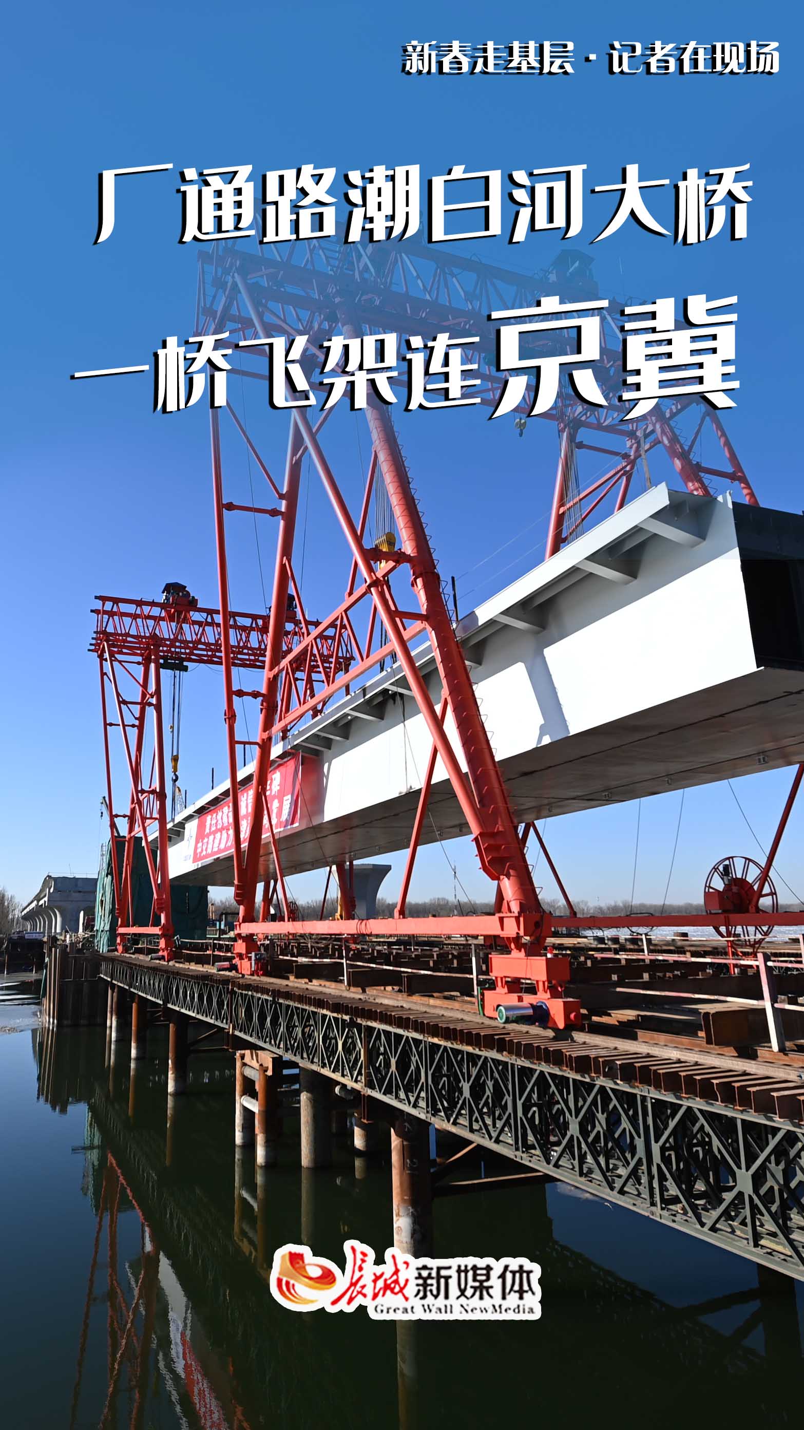 “目前,厂通路潮白河大桥的下部结构基础、墩台身、盖梁已全部施工完成,全面进入上部结构的钢箱梁吊装、小箱梁安装与桥面系施工阶段,总体进度已经完成了70%,我们计划2024年9月完工通车。”厂通路潮白河大桥河北段项目总工程师吴国梁说。