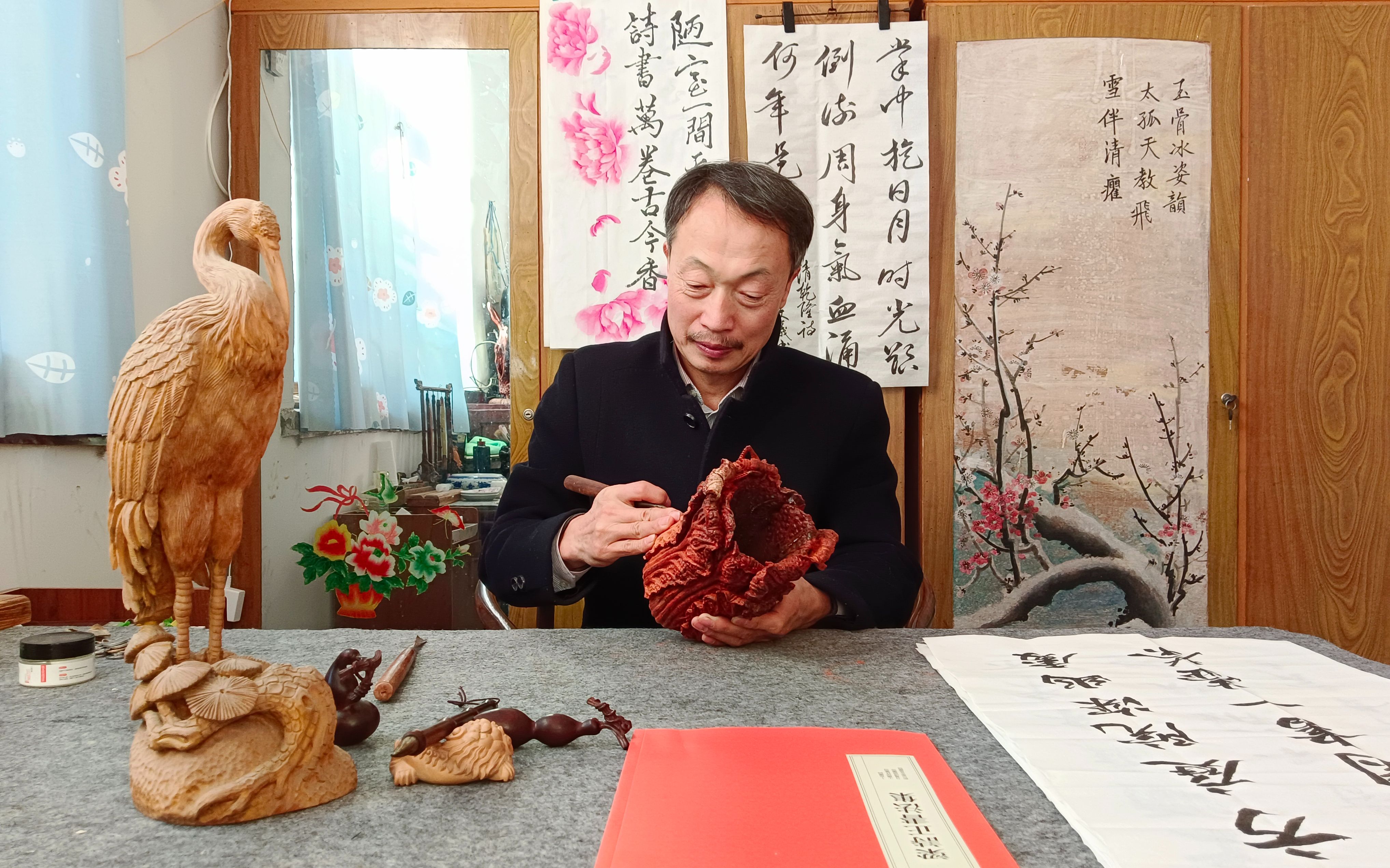 融入思想的作品,才有灵魂。为提升境界,李文义坚持每天读书看报,从《衡水日报》上学习习近平文化思想,了解党对文艺的最新方针、政策。他说:“我要让手中的木头活起来,体现诗情画意和中国精神。”
