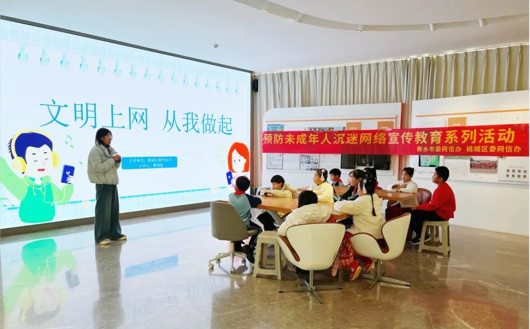 活动中,桃城区委网信办网络文明志愿者为学生们播放了原创视频《远离网络依赖 还我青葱少年》,以游戏诈骗作为切入点,讲述未成年人沉迷网络的特点和危害。现场,老师们通过问答互动的形式,引导学生们了解沉迷网络的深层次原因,帮助学生提升网络媒介素养,更好地与家长、老师进行沟通的同时,能够主动运用网络资源解决学业和生活过程中的困难。