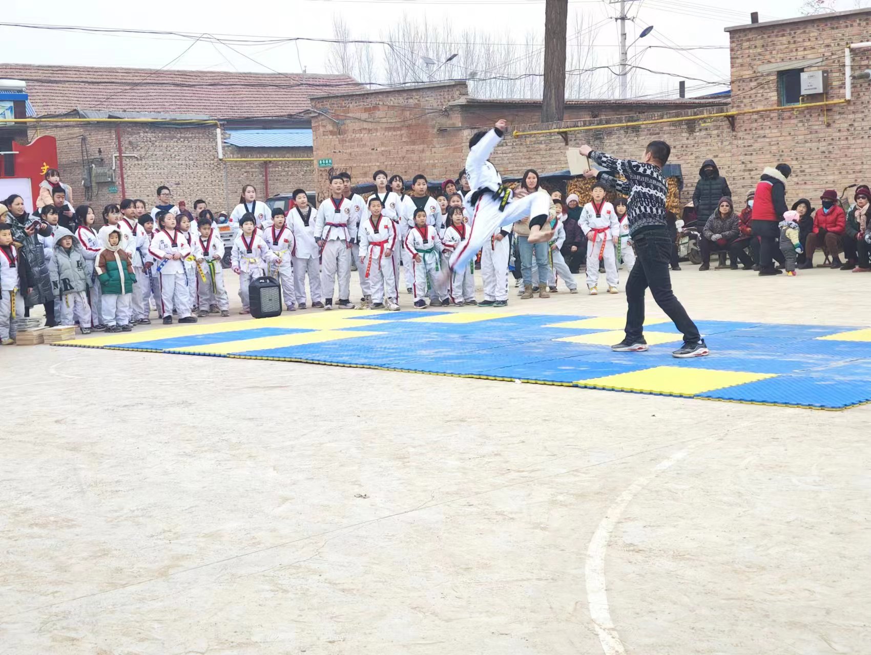 联欢会前,村民自发组成的锣鼓队早早就地在演出场地开始表演,吸引周边村民积极到场观看参与。随后,演出在舞蹈《新年大吉》中拉开序幕。广场舞、霹雳舞、跆拳道表演、朗诵《移风易俗换新颜》等10余个优秀节目轮番上演。此外,还有村民在现场写春联,互动游戏更是将现场气氛推向高潮。最后,联欢会在广场舞《新春送福送吉祥》中拉下帷幕。整场联欢会既有传统的民间艺术,又有现代的时尚元素,既有对乡村生活的描绘,又有对美好未来的憧憬,以原汁原味的表演,将农村乡土气息、民风民情和人文底蕴呈现在观众面前。