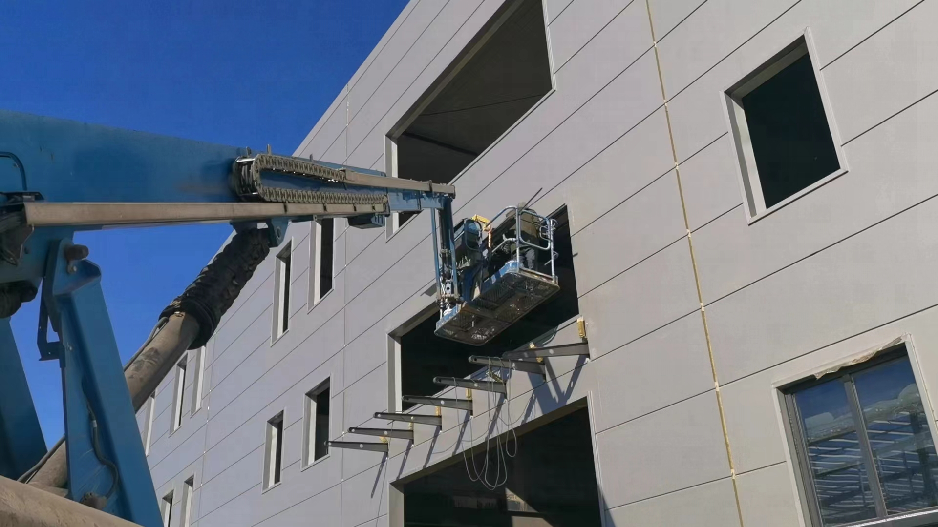 走进施工现场, 各类作业声不绝于耳,几十名工人忙碌身影穿梭不停,门窗安装、设备调试,“火力全开,马不停蹄”的建设景象透着一股热气腾腾。