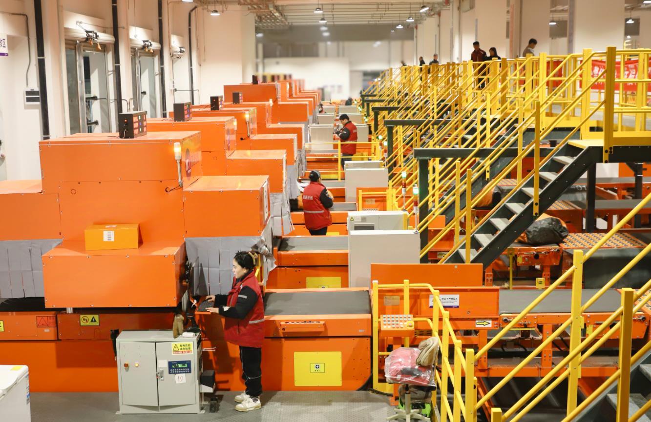 永清圆通速递北方总部基地华北转运中心自动化分拣库。记者 贾珺 摄