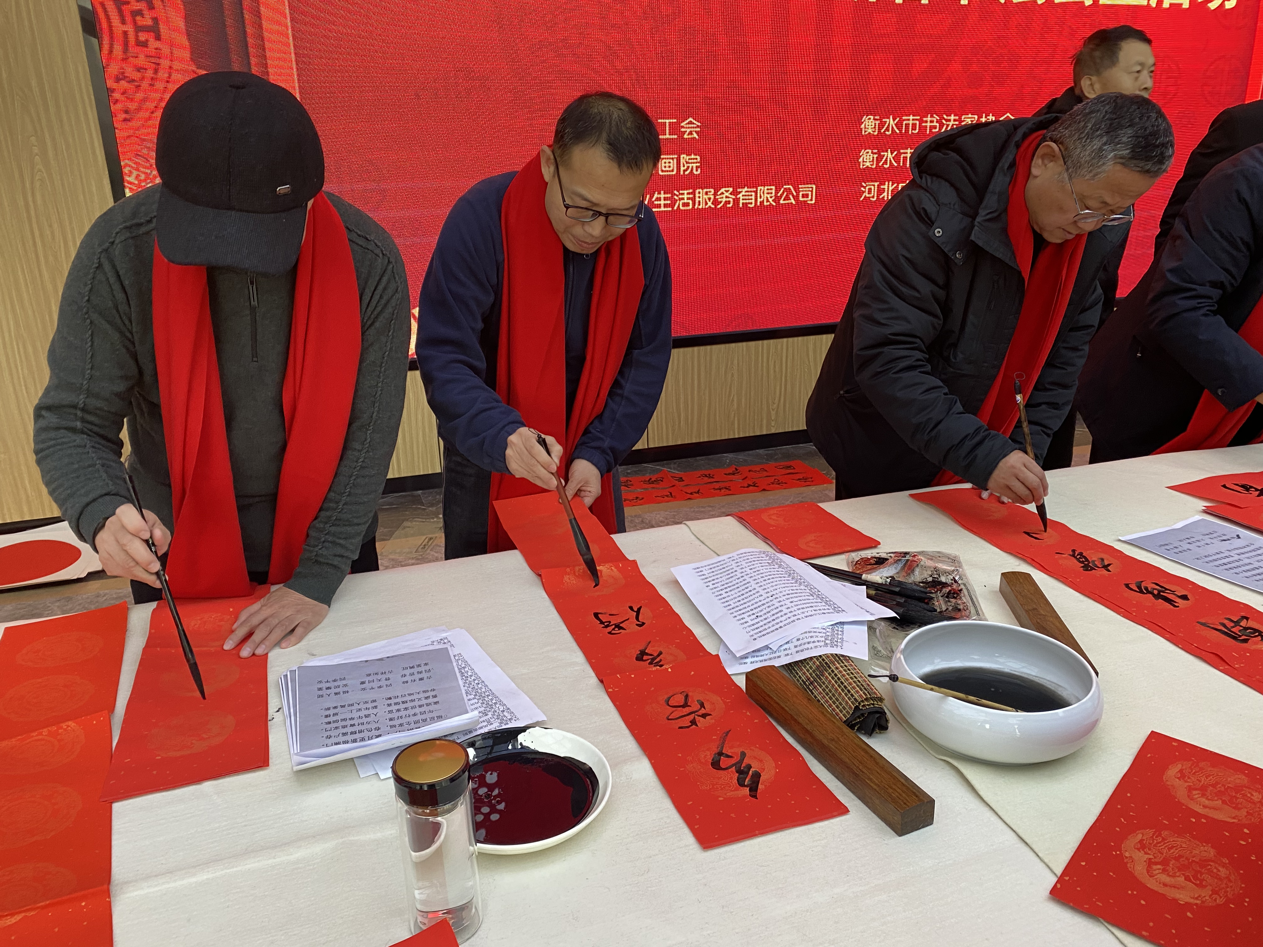 挥毫闹新春,桃符送福气。2月2日,衡水市总工会举办迎新春书法公益活动。市总工会携手市书法家协会、市书画院等单位,邀请知名书法家为广大职工群众和市民朋友写春联送“福”字。