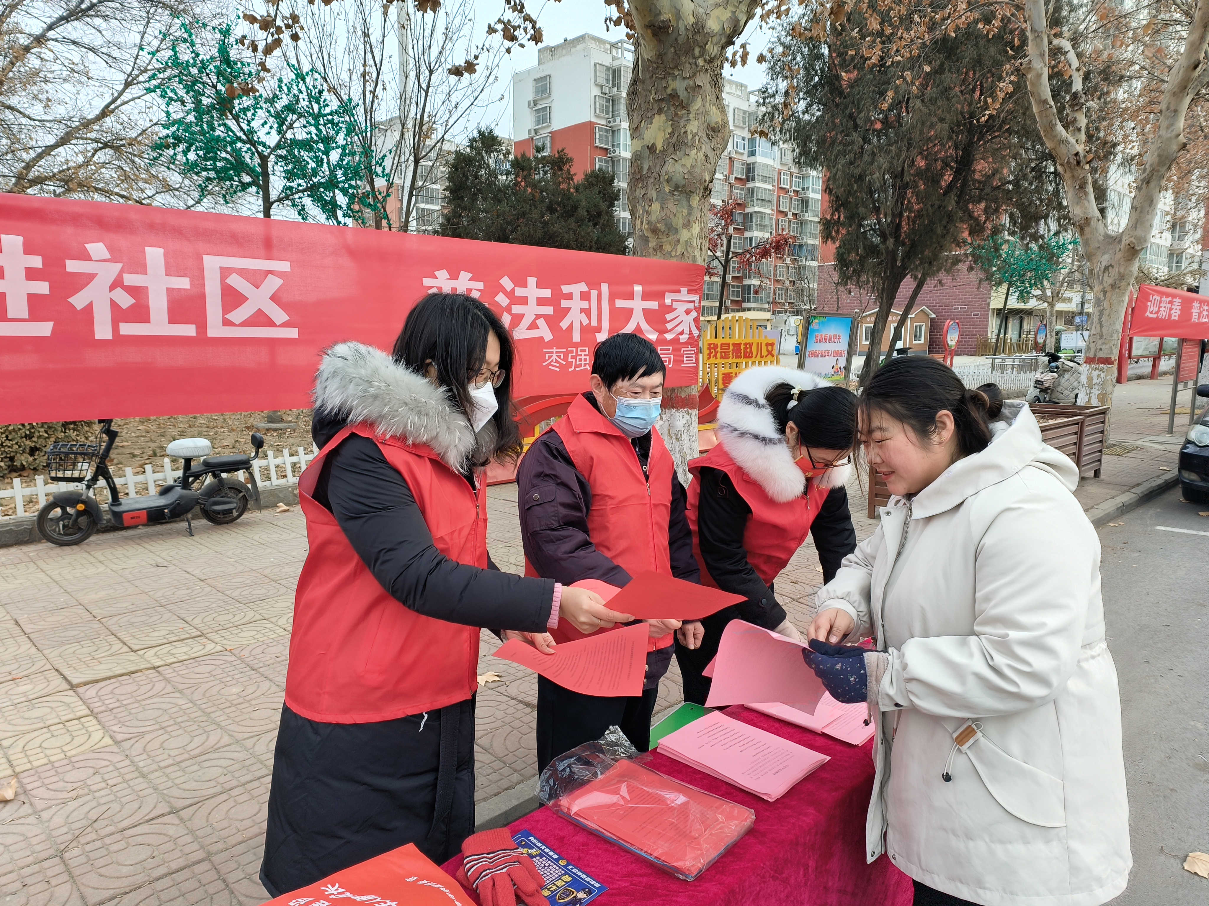 活动现场,工作人员拉起了横幅,摆好了桌椅,引来居民驻足。习近平法治思想、宪法、未成年人保护法、预防未成年人教育法、爱国主义教育法、预防诈骗……大家为每个往来居民送上一份内容丰富的法治宣传“大礼包”,希望能在春节这个特殊时期,让大家更加知法、懂法,能用法律武器保护自己的合法权益。同时,大家还围绕未成年人保护及教育、如何预防电信诈骗等内容,解答了居民在日常生活工作遇到的法律问题。活动中共免费发放书籍和资料300余份,接受法律咨询60余人次,受到社区干部和群众的一致好评。