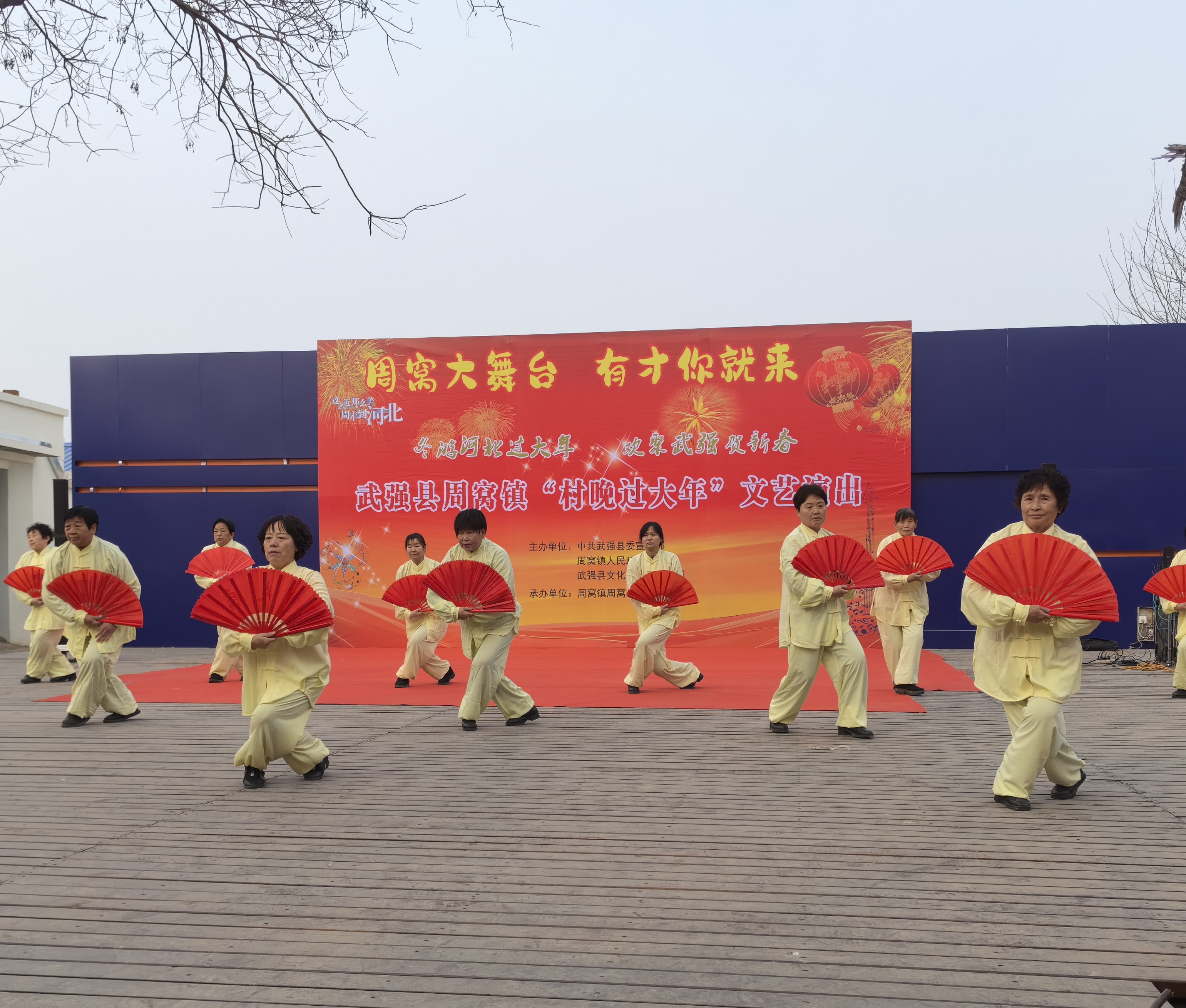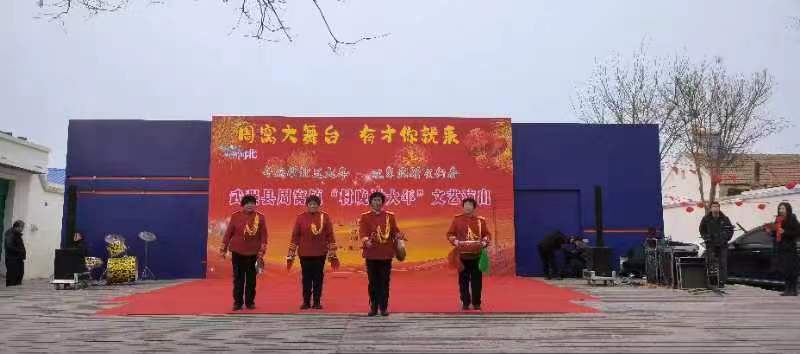 鼓乐声起,欢乐开启。当天下午2时许,演出在欢快热闹的《欢乐锣鼓》中正式拉开序幕,激情四射的锣鼓敲出了百姓丰收的幸福,点“燃”了全场的欢声笑语;歌曲《梅花赋》京腔京韵,婉转动听,让人百听不厌;三句半表演《唠唠咱村的幸福嗑》,以生动朴实、幽默诙谐的表演,展示了周窝村的风土人情和周窝人昂扬向上的全新风貌,将演出气氛推向高潮……葫芦丝独奏、评剧、西洋鼓乐、黄梅戏、太极扇等十几个节目轮番上演,引来现场阵阵掌声。