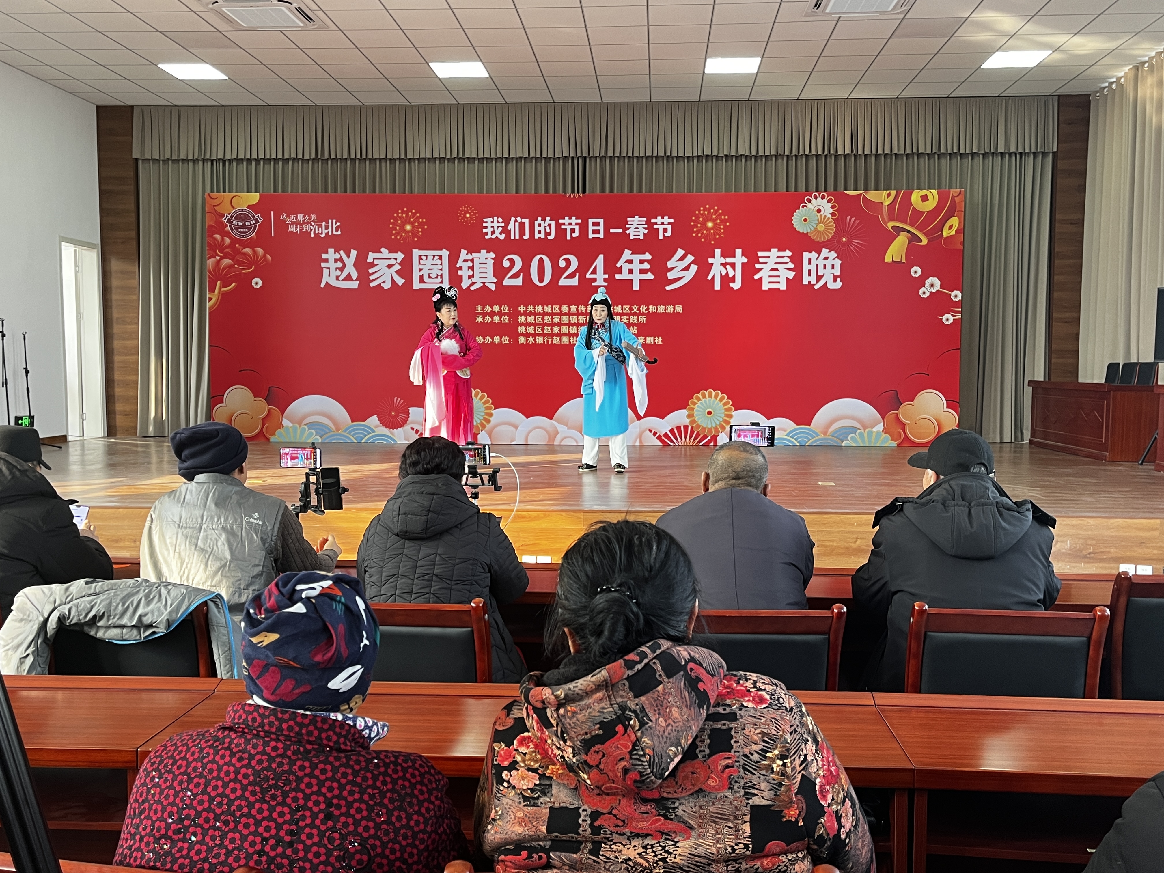 2月2日(农历廿三),桃城区赵家圈镇新时代文明实践所内座无虚席,这里将要上演一台精彩大戏——“我们的节日 春节”桃城区赵家圈镇2024年乡村春晚。