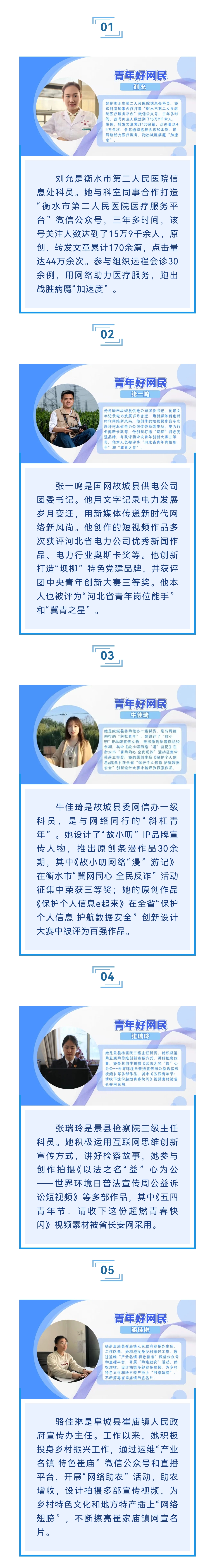 近期,由衡水市委网信办、衡水市文明办联合主办,长城新媒体集团衡水记者站承办的2023年“‘双争’有我·争做‘衡水好网民’”评选展示活动圆满收官。活动自启动以来,受到全社会广泛关注和积极响应,共征集到十类好网民好故事300余个。经过推荐征集、材料初审、复审、有关部门联合打分、综合评议等多个环节,确定了2023年“衡水好网民”入选名单。现将陆续展播50个“衡水好网民好故事”。让我们一起走近他们,倾听暖心的正能量故事,感受网络空间吹拂的文明新风。