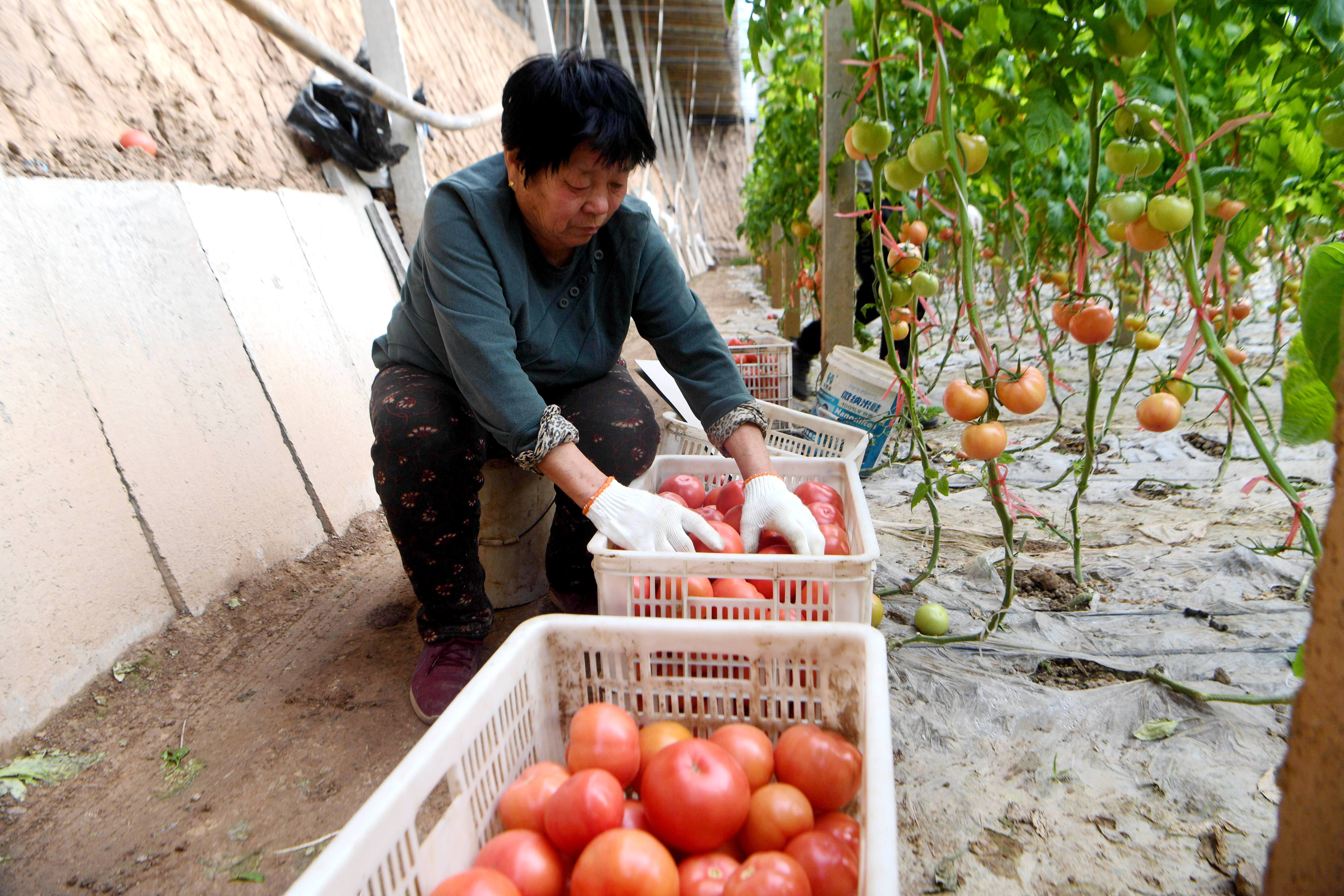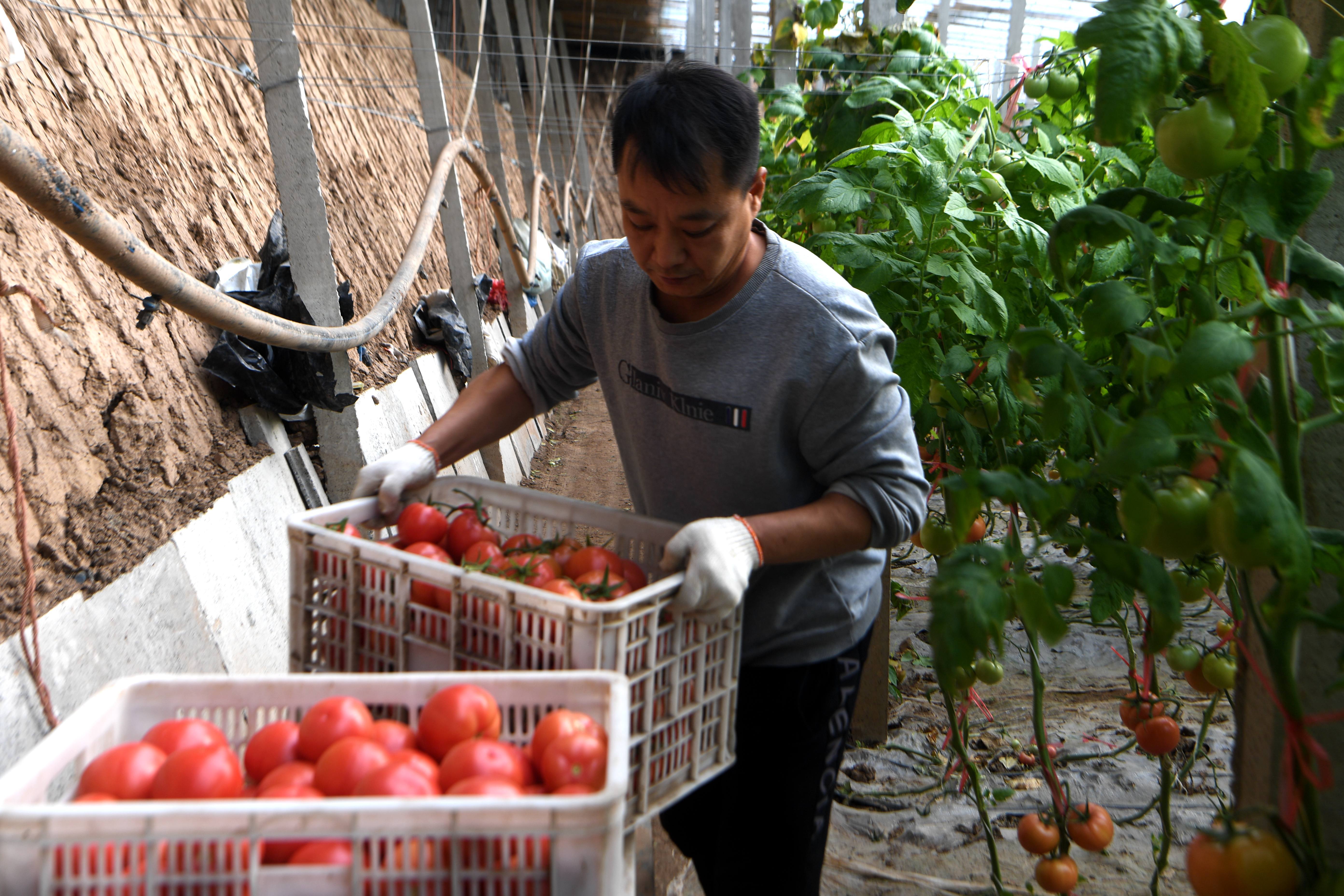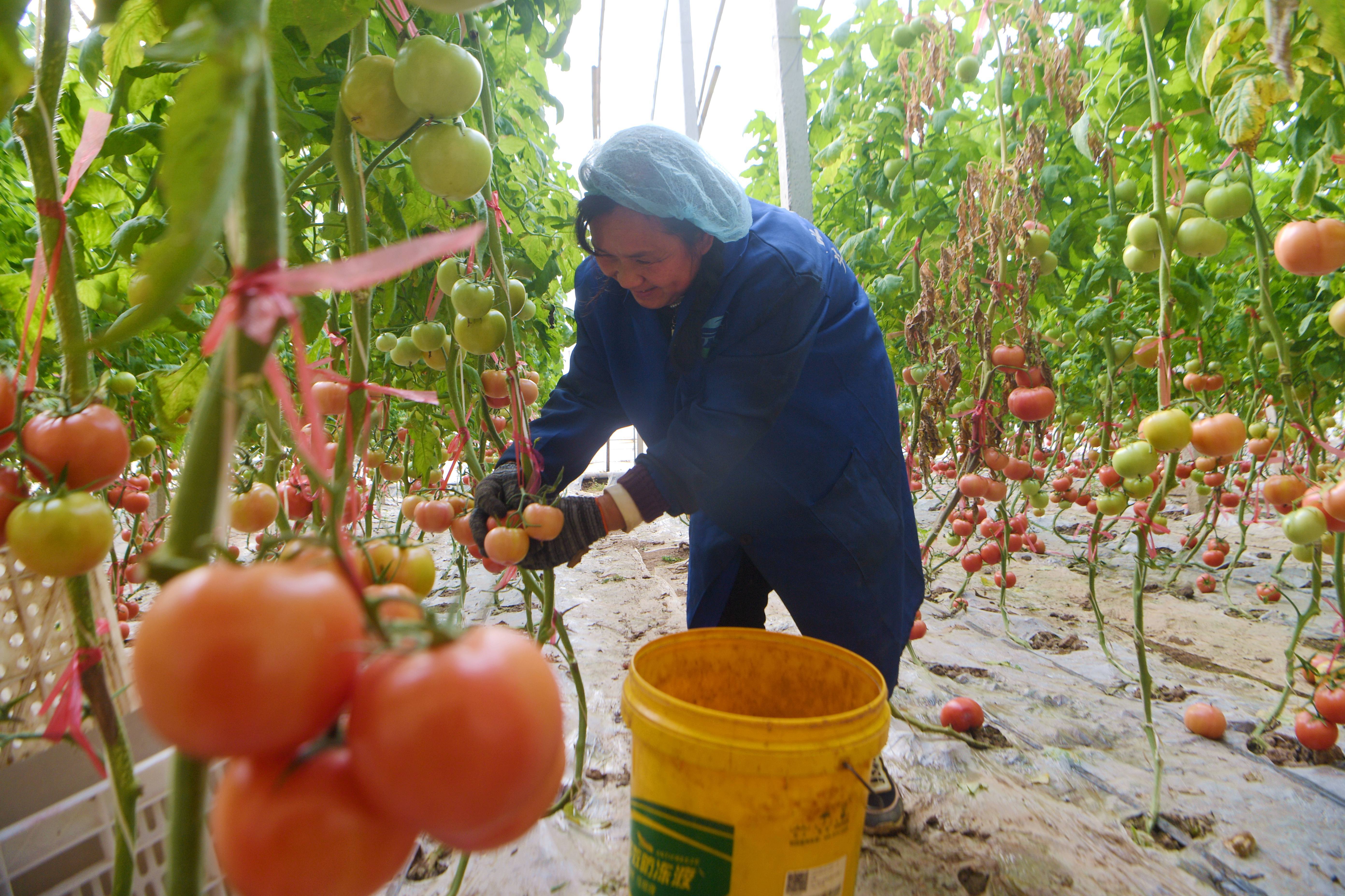 采收西红柿。崔佳栋 摄