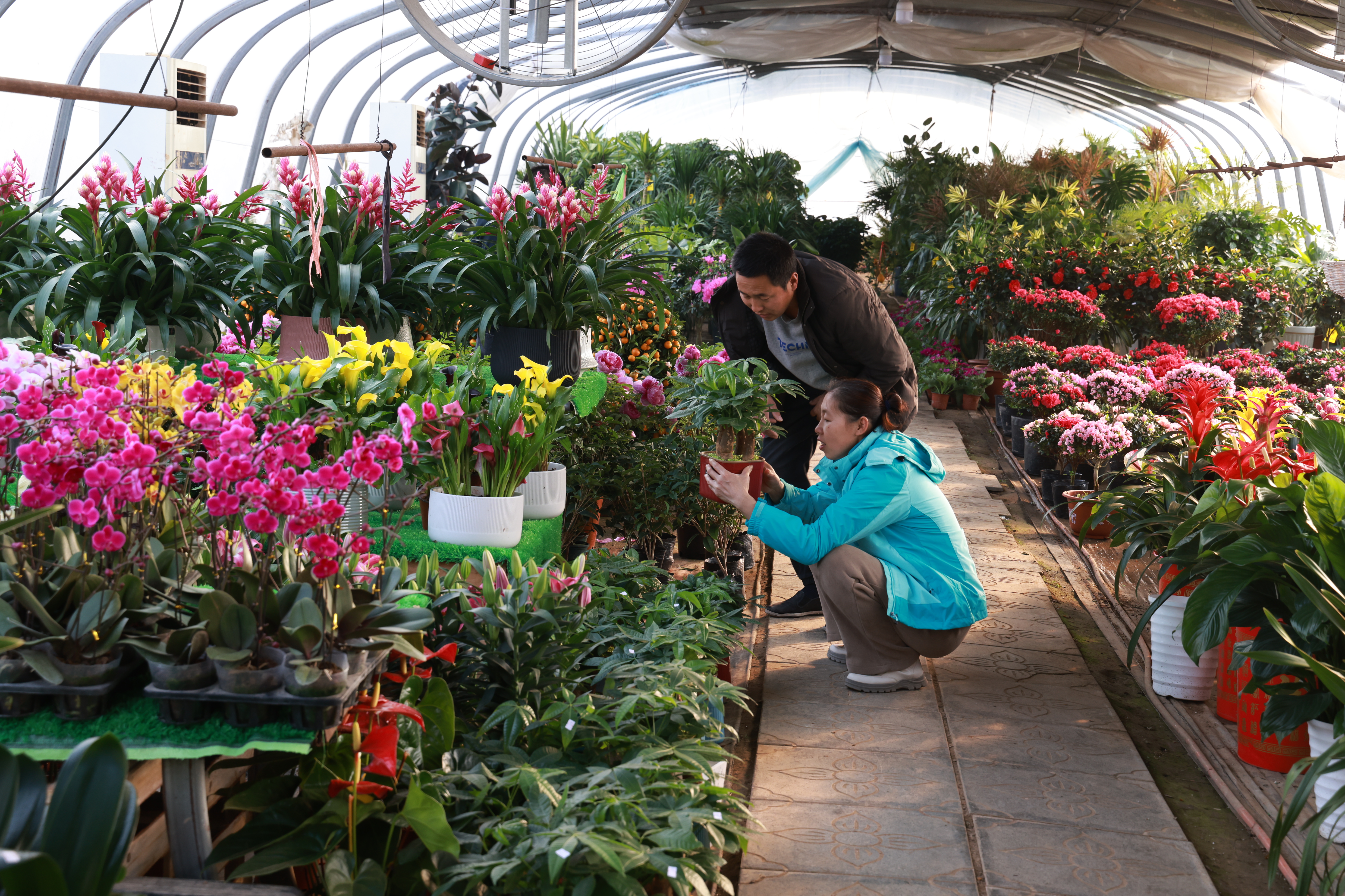 “春节前是我们生意最好的时候,前来赏花、买花的居民特别多,咱们中国人对春节都非常重视,节前大家都愿意用鲜花去装扮自己的家。我们花棚也尽力提供多样的花卉来满足人们的需求。”花棚负责人袁立朝说。