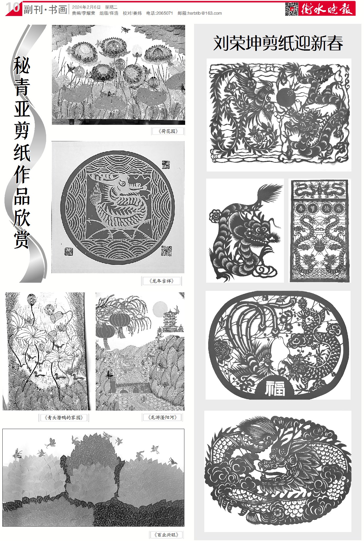 秘青亚剪纸作品《荷花园》《龙年吉祥》《青头潜鸭的家园》《龙游滏阳河》《百业兴旺》刘荣坤剪纸作品编辑:李耀荣 点赞 +1 微博 微信 我要评论 发布 相关推荐 【聚焦报道基地】武强年画博物馆开展清明亲子主题活动 衡水速览 1小时前 九年九变① | 疏解之变:到雄安去,做雄安人 关注 19小时前 书香筑桥梁 童心向未来 衡水这场阅读活动点亮少年时光 衡水速览 2天前 再攀高峰!中国人寿2025年总保费首破7000亿,同比增长8.7% 保险生活 3天前 习言道|9年4次考察雄安,习近平心中的“千年大计” 要闻 3天前 记者手记:胸怀“千年大计”,奔赴“新的赶考” 时政 3天前 倪岳峰在石家庄参加2026年义务植树活动 政情 3天前 9年4次考察雄安,习近平心中的“千年大计” 关注 3天前 热门 一天 三天 一周 1 温暖驿站落京城 河北福嫂有“娘家” ——衡水桃城区“不住家保姆服务站”暨“河北福嫂进京津服务基地”正式授牌 2 “四梁八柱”探新记①|一块特种钢,如何炼就“硬功夫”? 3 习近平总书记在雄安新区考察时的重要讲话,让河北干部群众倍感温暖深受鼓舞 4 指尖织就锦绣 匠心守护非遗 ——记衡水地毯传统编织技艺非遗传承人陈兵 5 中央第三生态环境保护督察组督察河北省情况反馈会召开 6 河北民航领域迎来立法 助力京津冀世界级机场群建设 7 九年九变① | 疏解之变:到雄安去,做雄安人 8 习近平总书记在雄安新区考察时的重要讲话,让河北干部群众备受鼓舞 9 近镜头|总书记深切关怀高原病防治工作 10 春临雄安丨探访雄安疏解 如何“一马当先”? 1 未来一周 衡水市花粉浓度进入高峰期 2 衡水市全力为市场主体发展保驾护航 3 【新闻发布】以改革破题 以数智赋能 以服务暖心 衡水市数政局按下优化营商环境“快进键” 4 衡水市区铁北公园:梅香伴连翘 春日美景引客来 5 金融镜鉴|瑞众人寿:高居投诉榜首 深陷合规困境 6 武邑县网络达人走进衡水野生动物园 让“文旅流量”变为“消费增量” 7 衡水市以法治“硬举措”优化营商“软环境” 8 衡水向城市“顽疾”亮剑:文明养犬入人心 车辆停放更有序 9 压缩开工时间30天 衡水“预招标”改革见实效 10 衡水深耕“高效办成一件事” 构筑助企服务新生态 1 河北省2026年“世界水日”“中国水周”现场宣传活动在衡水举行 2 一碗免费热食 暖了衡水的烟火人间 3 衡水市2026年上半年全国计算机等级考试本周末开考,市教育考试院发布考前温馨提示 4 央媒省媒关注衡水春耕春管有序进行 5 315金融观察|交通银行:2026年以来累计被罚没超2200万元,近30天黑猫投诉平台新增超230条投诉 6 珍惜水资源 共享大自然 衡报文明小记者走进大自然宣传节水护水 7 微改革激发新活力 微创新助力大发展——衡水市扎实推进改革创新工作走深走实 8 衡水市完成全省首个公共数据产品交易 公共数据收益缴入国库 9 深州市庄火头村:人勤春早管桃树 精耕细作盼丰收 10 深度报道|衡水商超这些年 广告 广告 广告 24小时 1 【聚焦报道基地】武强年画博物馆开展清明亲子主题活动 2 源清流清 向上向善 3 海报系列||早安衡水 4 近镜头|总书记深切关怀高原病防治工作 5 万山磅礴看主峰|习近平论网络内容建设 6 指尖织就锦绣 匠心守护非遗 ——记衡水地毯传统编织技艺非遗传承人陈兵 7 温暖驿站落京城 河北福嫂有“娘家” ——衡水桃城区“不住家保姆服务站”暨“河北福嫂进京津服务基地”正式授牌 8 写在山海之间的生态答卷 ——秦皇岛市自然保护地整合优化工作纪实 9 春临雄安丨探访雄安疏解 如何“一马当先”? 10 九年九变① | 疏解之变:到雄安去,做雄安人