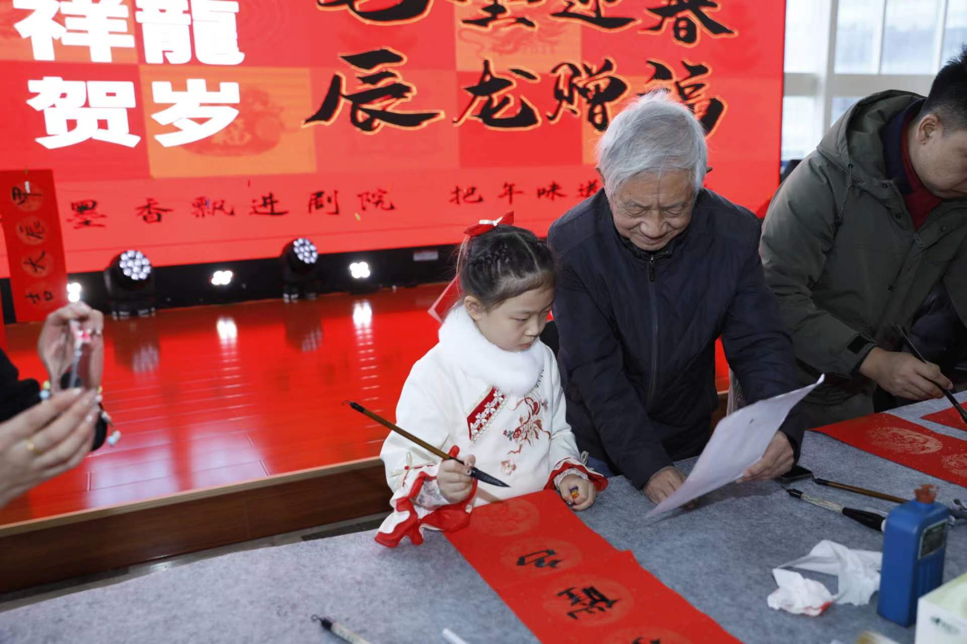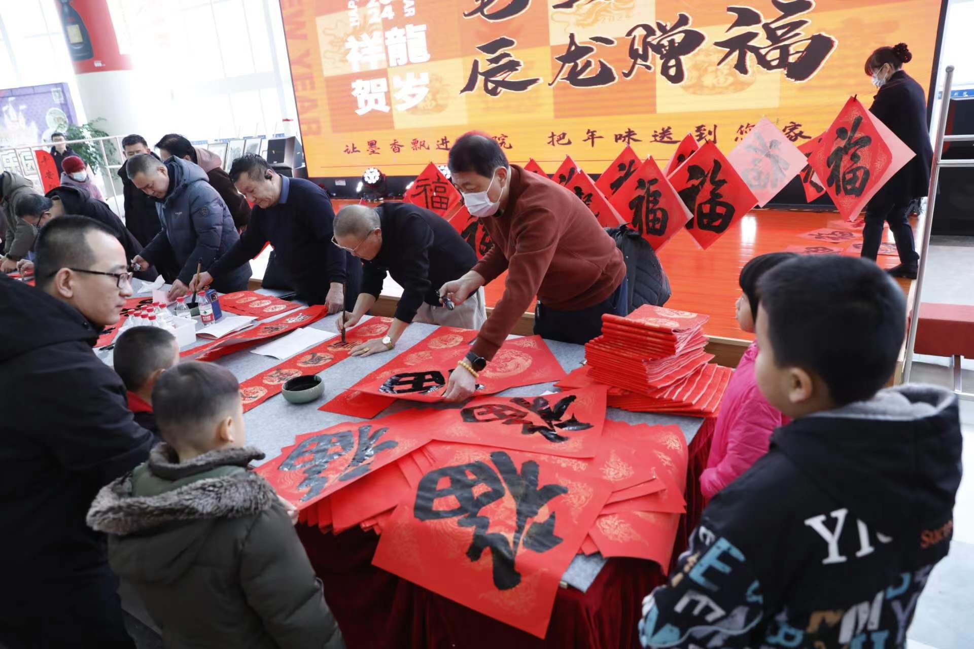 “让墨香飘进剧院,把年味送到您家。”2月5日上午,衡水保利大剧院大厅,全市众多知名书法、绘画大师应邀而至,现场挥毫,共同拉开了“笔墨飘香 辰龙送福”送福送春联活动的序幕。
