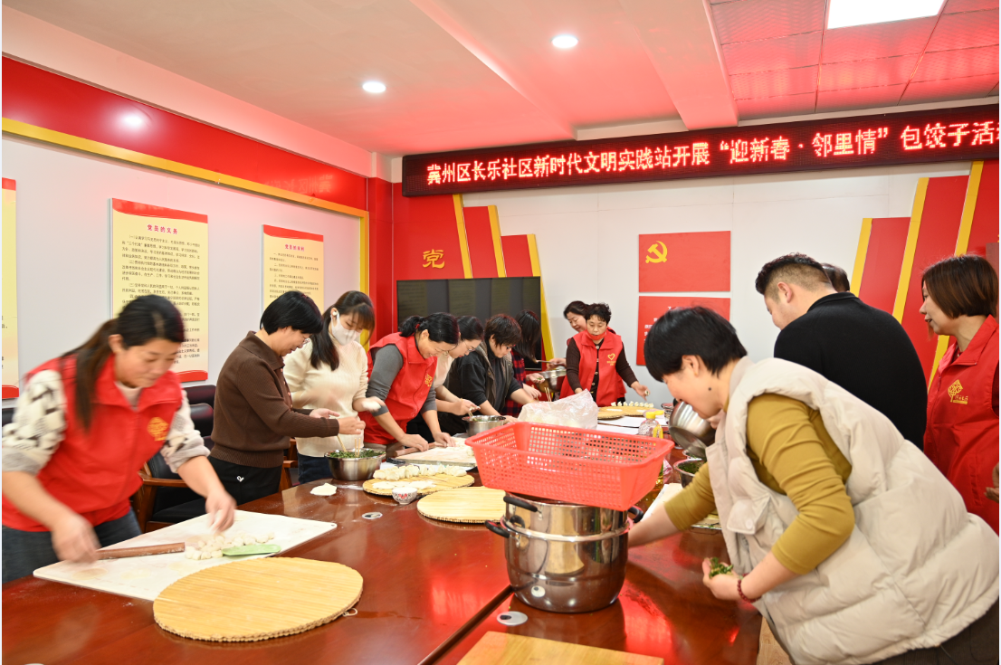 2月1日上午,冀州区长乐社区新时代文明实践站开展“迎新春 邻里情”主题活动,居民们包饺子,话家常,感受过年的氛围。