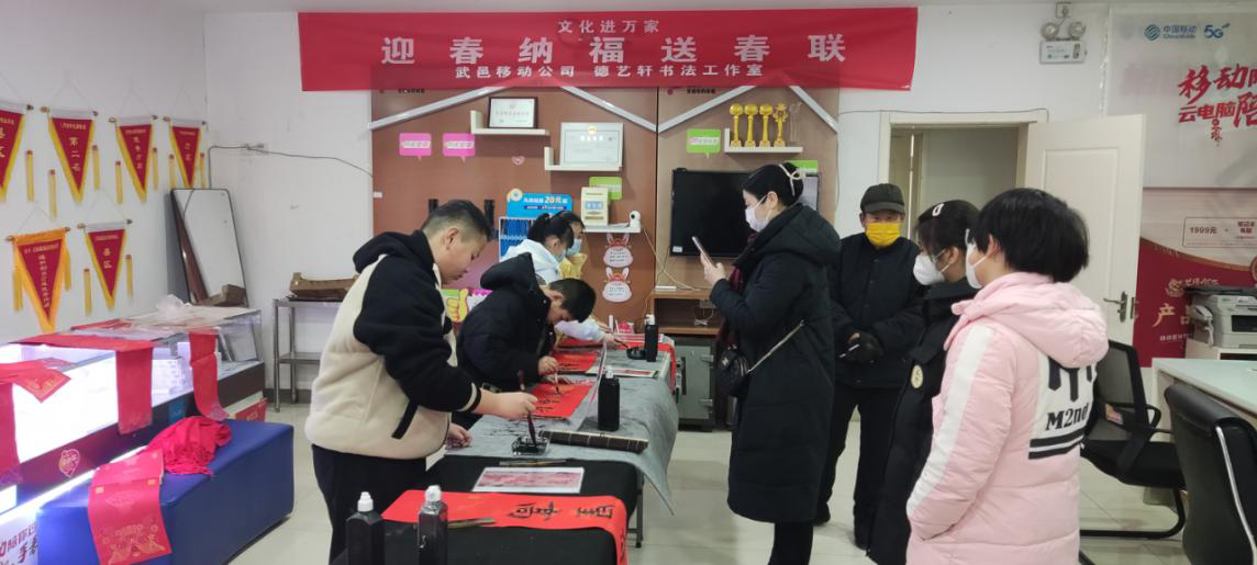 临近春节,中国移动河北武邑分公司(以下简称:武邑移动)为营造喜庆祥和的迎新春氛围,让客户感受浓厚的中国年传统文化,在武邑富强街营业厅开展了“迎新春 送万福”活动。