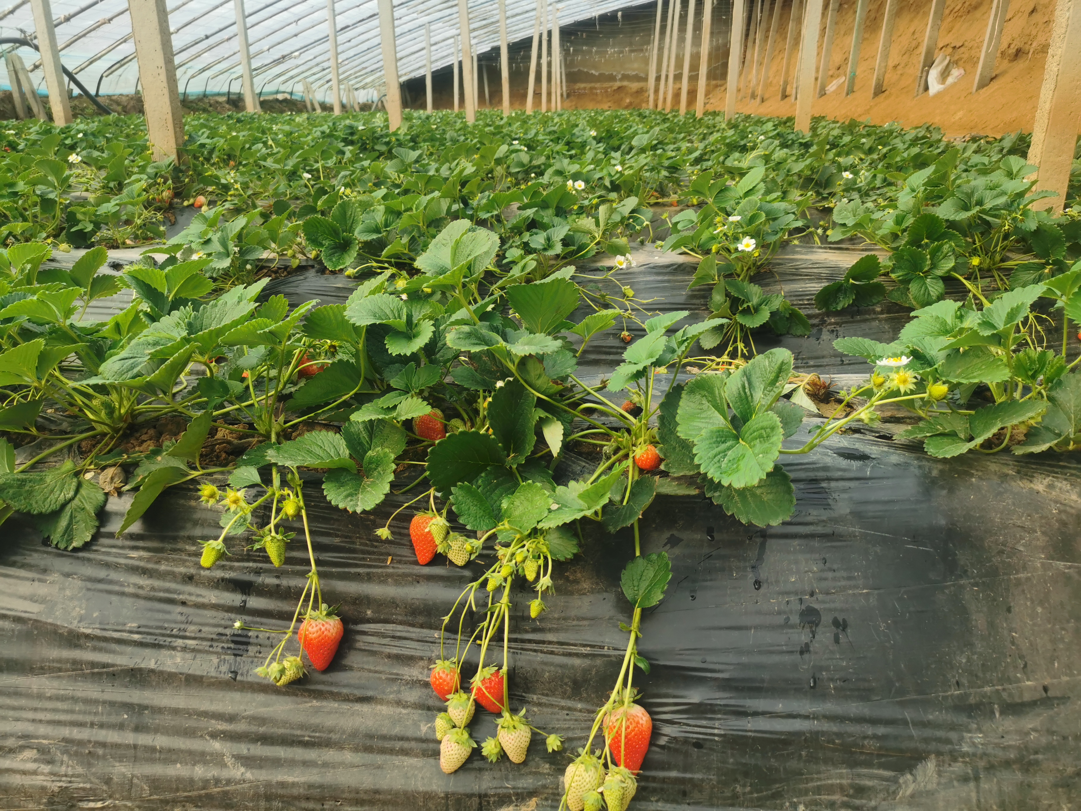悯农种植专业合作社成立于2019年3月,现有15个葡萄种植大棚,4个草莓种植大棚,50亩金银花,年销售额可达400万元,带动了周边20余户从事种植业。张建军介绍说:“目前草莓正值大量成熟上市期,可以采收到五一前后,全部采收后,四个大棚预计收入可达12万元左右。”
