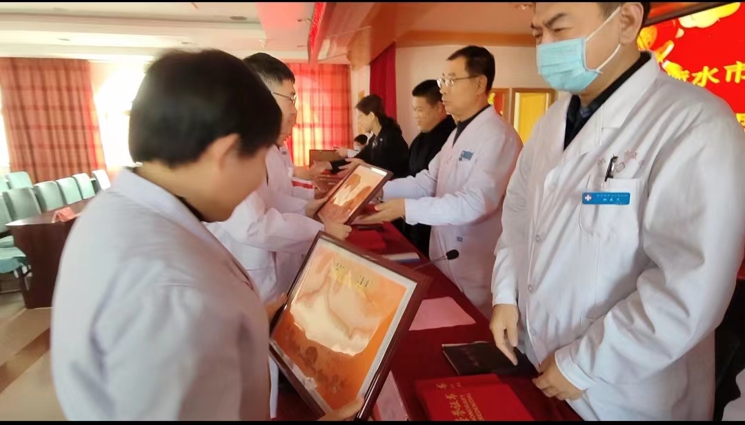 桃城区副区长何红卫在讲话中对五院2023年诊疗范围不断扩大,服务质量稳步提升,教学科研再上台阶,尤其是标准版胸痛中心迎接“国考”,神经内科作为首批省内卒中防治中心认证单位对照“高级卒中中心”标准开展工作,康复医学科入选河北省中医优势专科拟命名单位(非中医类医疗机构),记忆防治中心被授予国家“认知障碍中心”建设单位等,实现了内涵建设与改革创新的融合发展给予充分肯定。希望在新的一年里,市五院强专科、抓特色、发挥优势促发展,努力开创医院发展新局面。