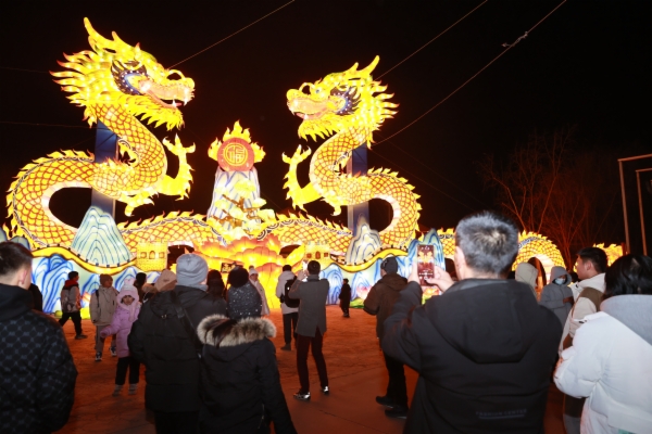 “盛世中国·万事兴龙”是本届灯会的主题,活动将持续至2月25日,每天17:30至21:30都可赏灯。此次灯会,共设置了迎春纳福区、精灵森林区、万事兴龙区、华彩戴河区等四个主题区域。整个景区用大型灯组惟妙惟肖地演绎出中国龙的形象,以各自独立又相互串联的自然主题灯组构成一幅巨型自然画卷,让市民游客目不暇接,充分展现了北戴河的旅游特色。畅游在绚丽多彩、神奇美妙的夜景中,龙年生肖灯组、新春年味灯组、科技互动灯组等组成的灯海,点亮北戴河的新春夜空,映照出每个人的笑脸,一步一景。大家纷纷拿出相机、手机,抓紧记录下这美好的时刻。