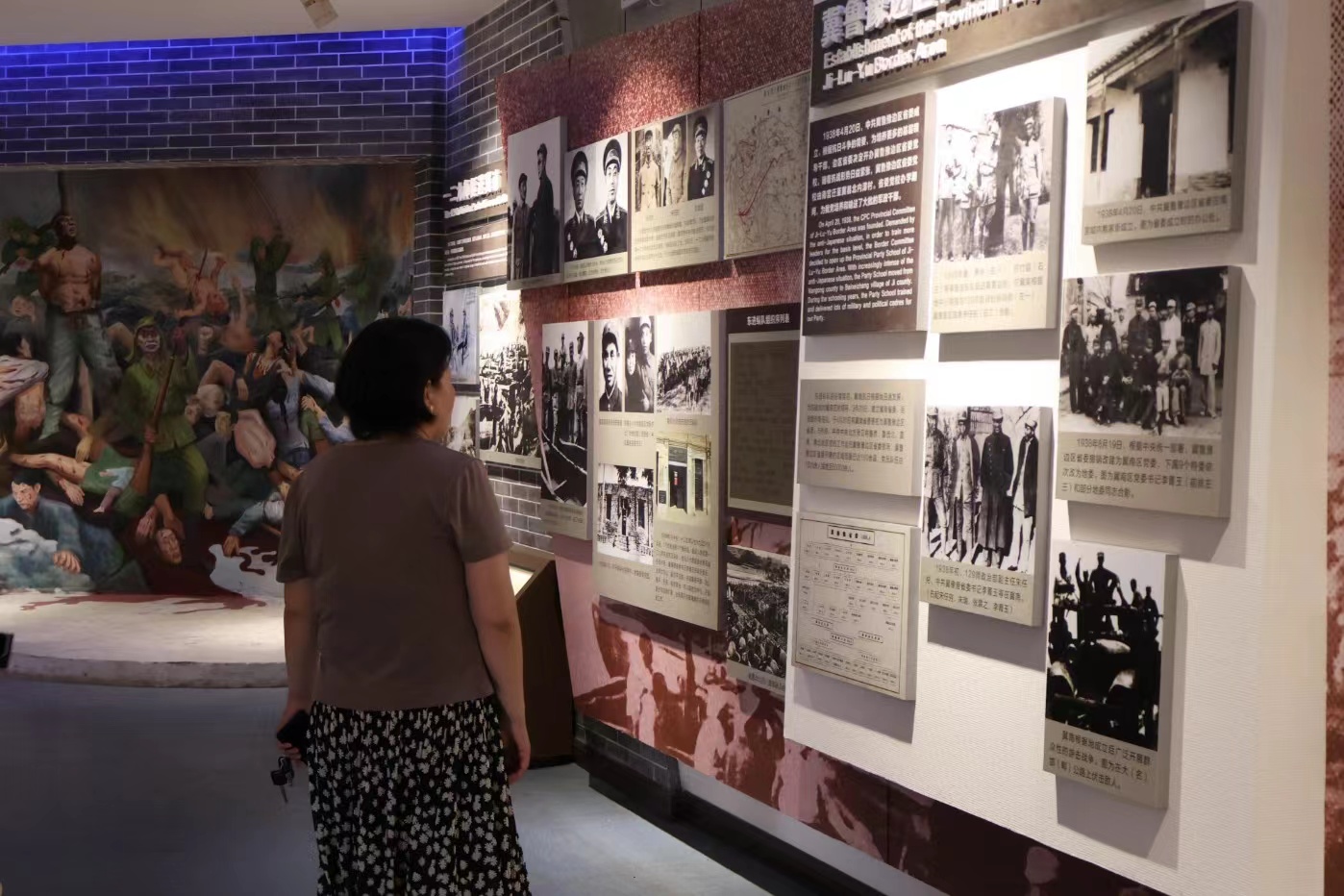 随后,大家排着整齐队列跟随讲解员赵平,走到村内“中国人民抗日战争展览墙”前,重温峥嵘光辉岁月,追寻革命红色记忆。