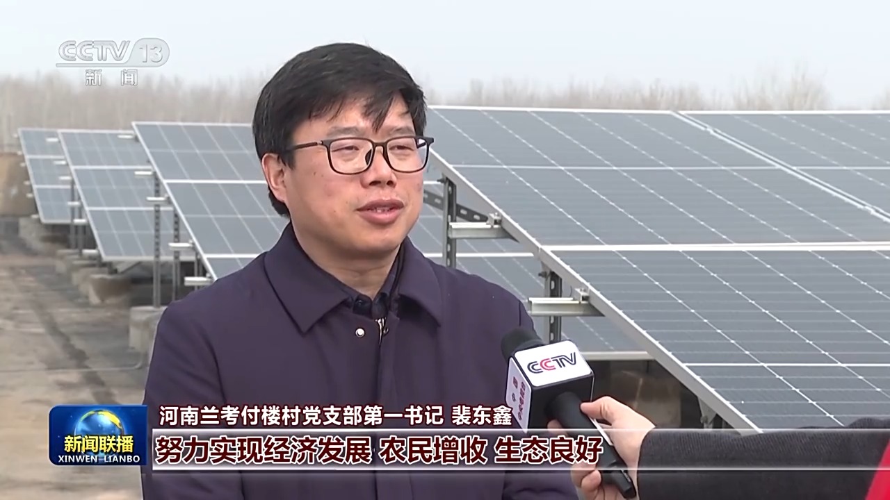河南兰考付楼村党支部第一书记 裴东鑫:习近平总书记要我们在绿色发展中,努力实现经济发展、农民增收、生态良好。我们大力实施了整个村庄的零碳化改造。现在我们全村年光伏发电量超过120万度,完全满足我们整个村子的用电需求,我们村集体一年增收十几万元。