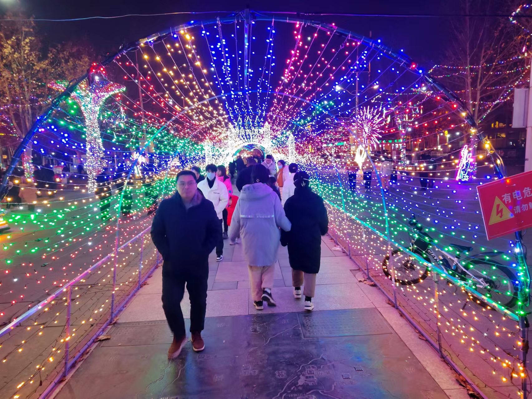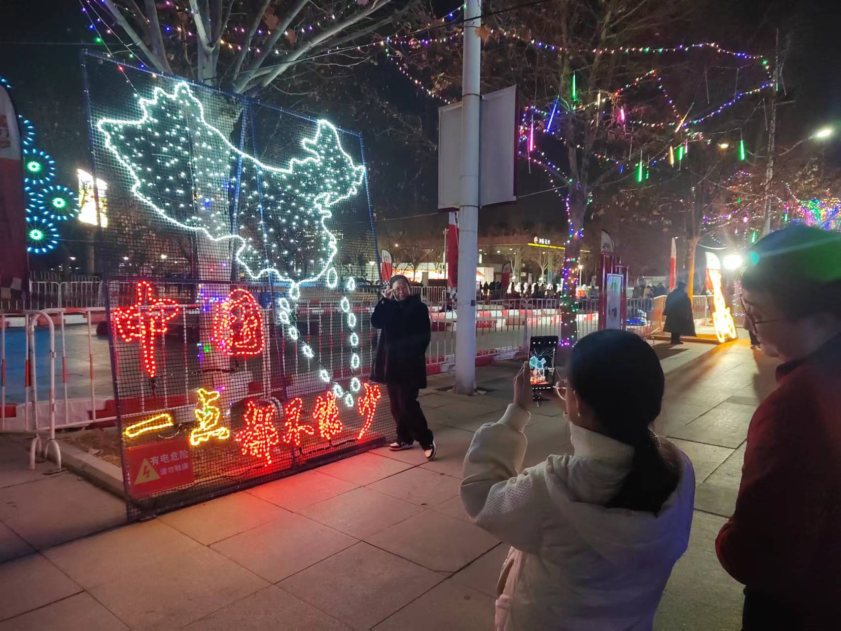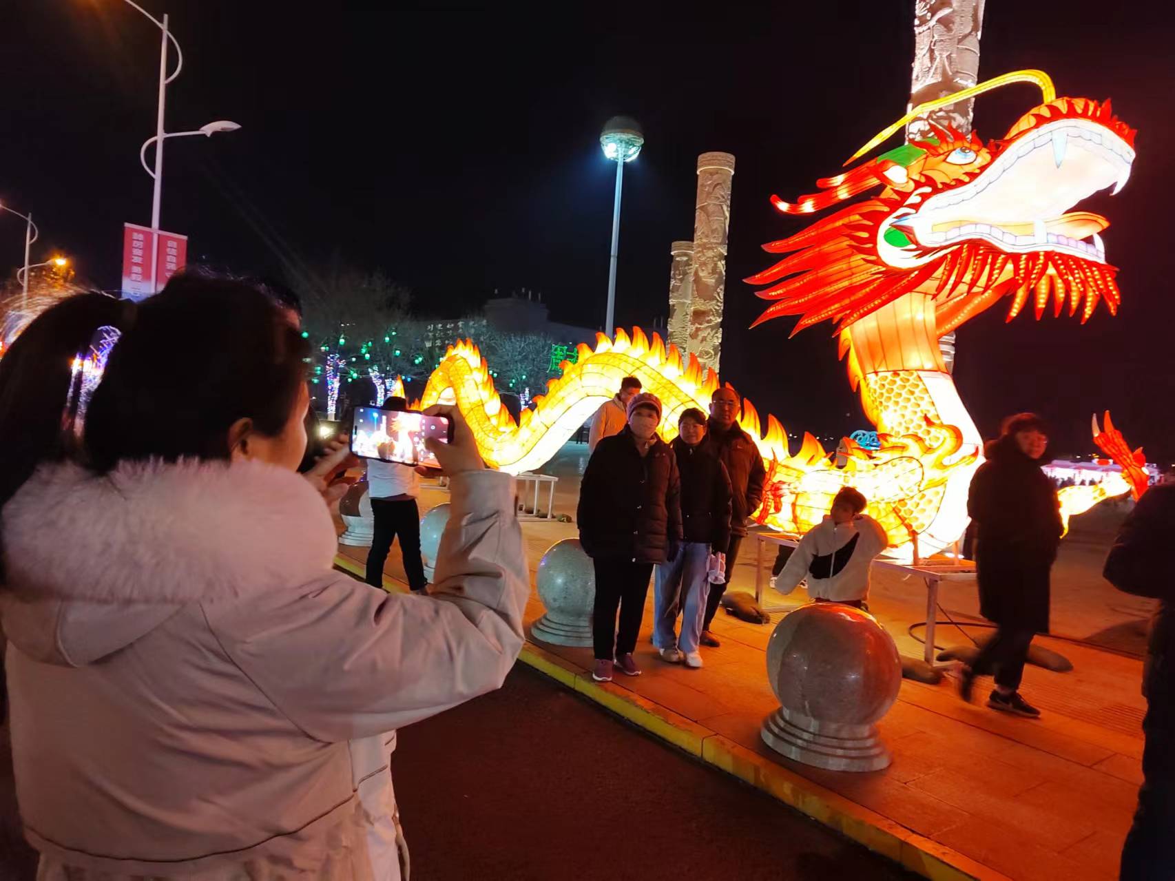 园博园内举办的“篝火千灯 狂欢盛典”第二届非遗民俗花灯展成为节日的一大亮点,吸引了不少市民前去观灯赏景。夜幕降临,来赏灯的市民也渐渐多了起来,有举家一起的,有好友结伴而来的,也有情侣相约而来的,冬日里的严寒却丝毫没有减弱市民游玩儿的热情。色彩缤纷的彩灯渐渐亮了起来,上百组花灯惟妙惟肖,有蝴蝶、有巨龙、有卡通人物……各种极具创意的花灯,令人目不暇接,为节日的湖城绘就了一幅绚丽的光影美图。市民在璀璨的花灯里游玩儿,打卡拍照,不亦乐乎。