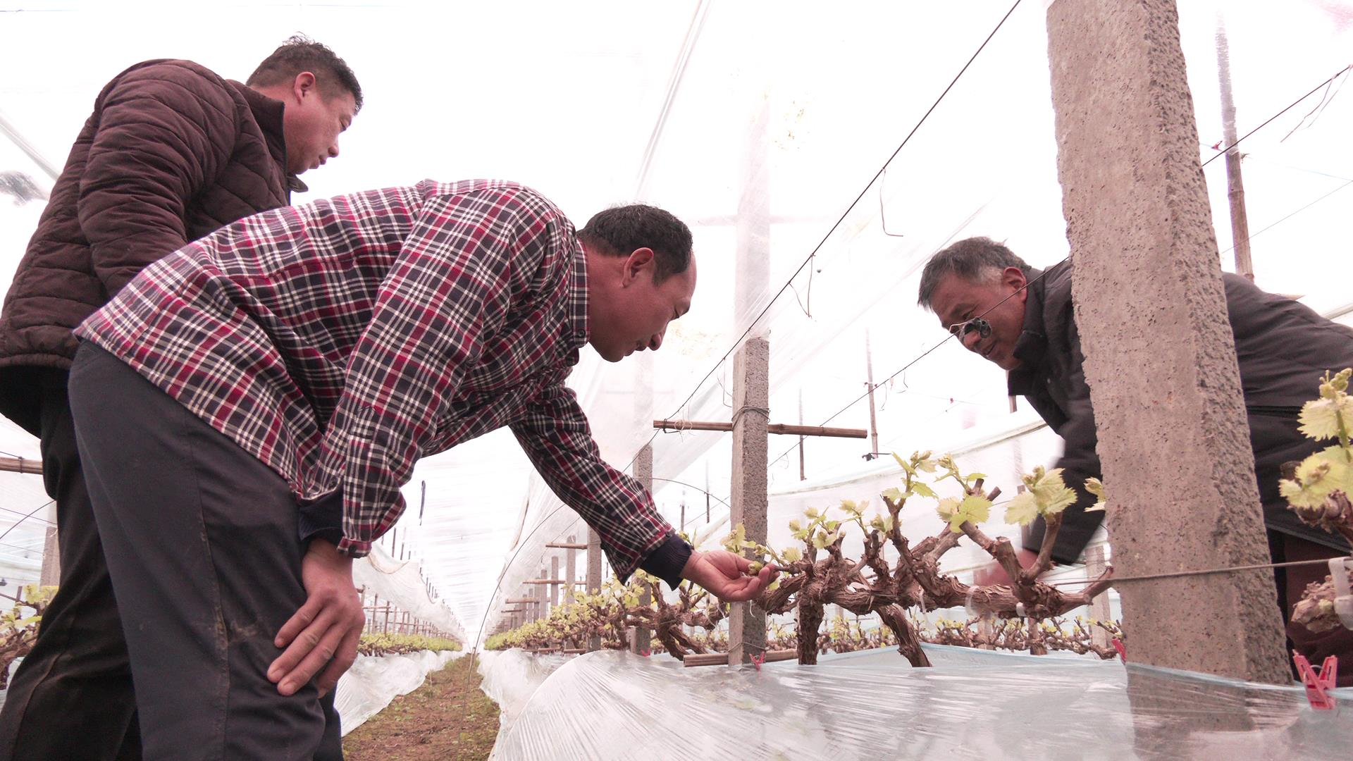 正值大棚葡萄春季管护期,在门庄村的葡萄大棚里,种植户们一早就开始了葡萄幼苗的管护工作。在农技专家的指导下,种植户撩膜通风、打尖摘心,各司其职,抢抓春季田间管理的关键时期,积极做好大棚育苗管护,用奋进添春意,为新一年的丰产增收打好基础。