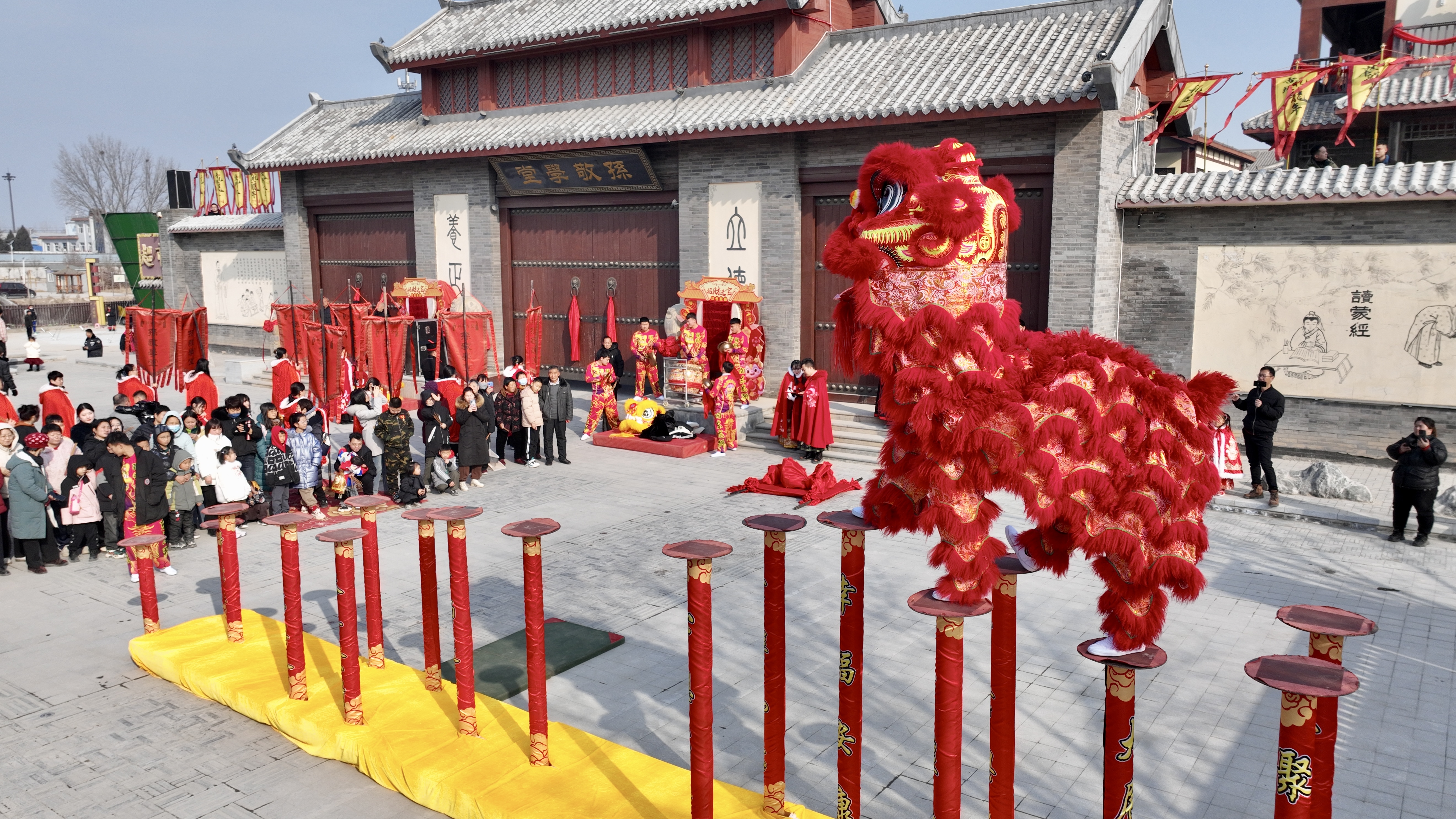 2月10日,大年初一,闾里古镇孙敬学堂“古礼拜龙年”第七届古礼大庙会盛大开幕。此次庙会包括,五福汇聚福禄寿喜财、孔圣庙堂祈福上香、千年古礼感受传统文化、好戏连连游戏杂技演出、美食盛宴饱足味蕾等五大主题,游客们充分感受到了热闹喜庆的节日氛围,在这里找回了记忆中的年味。