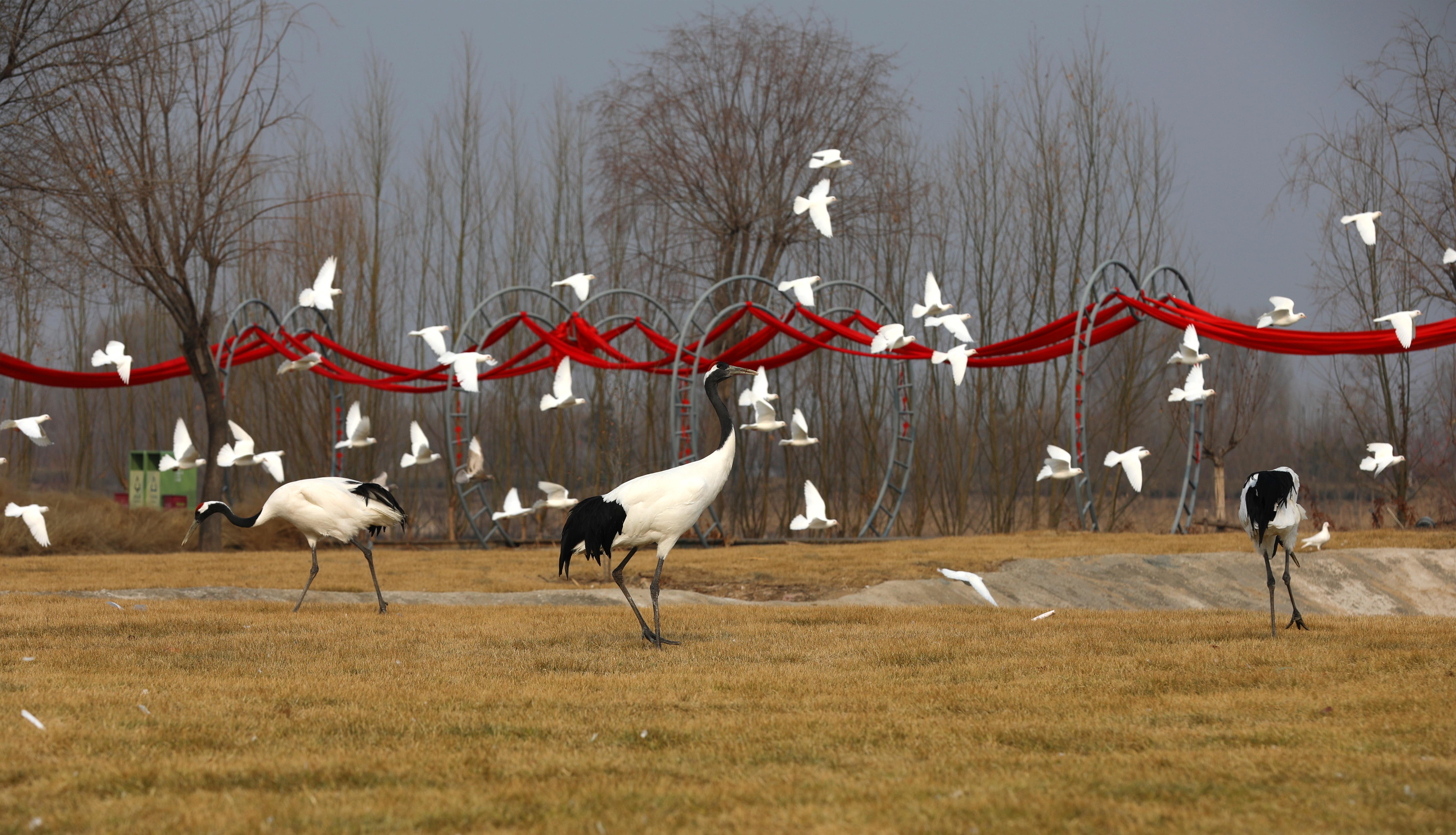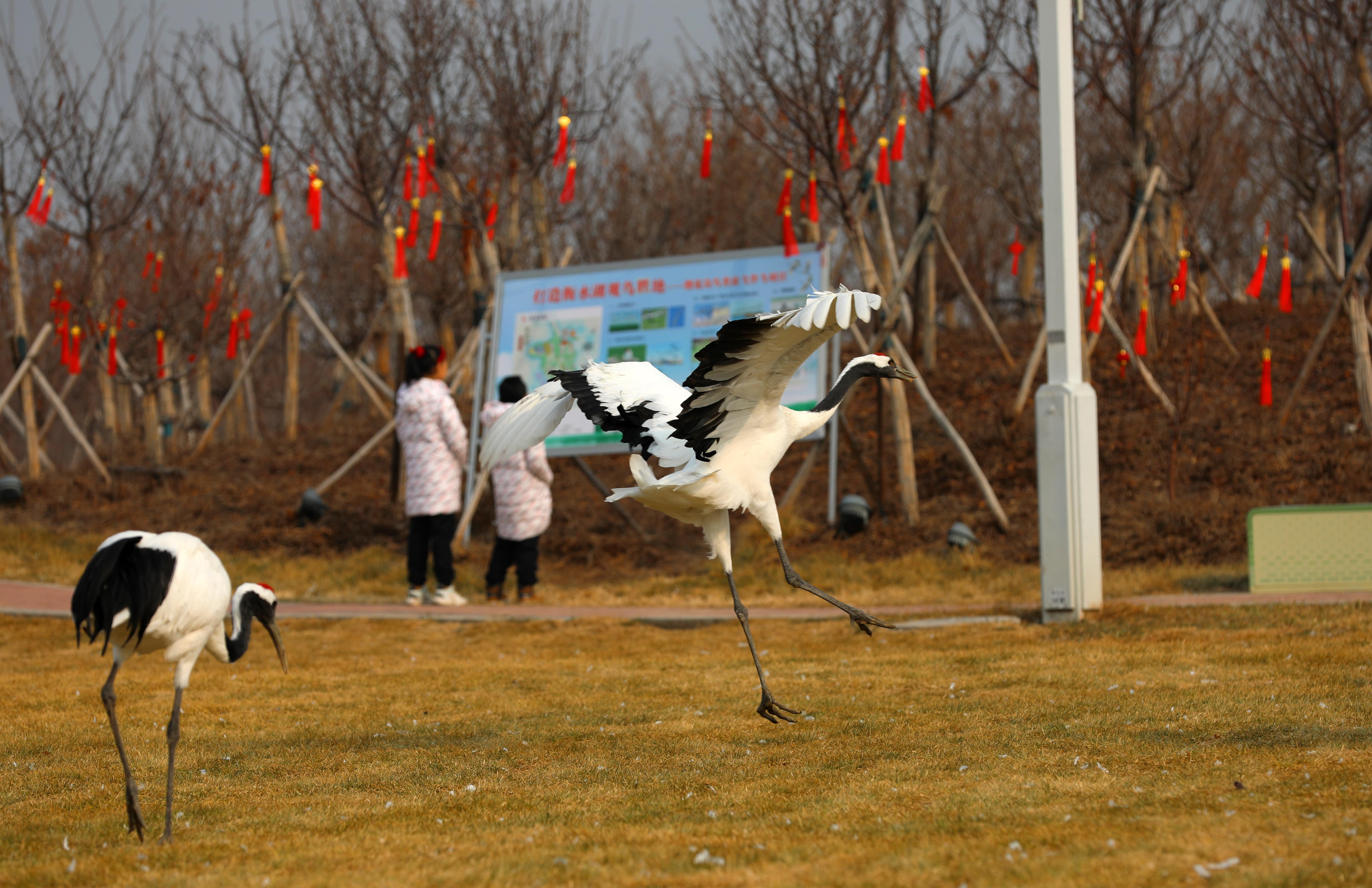在滏阳新河滩地广袤的农田里栖息着几千只灰鹤,它们时而悠闲自在地漫步,时而在空中优雅盘旋,时而单腿伫立闭目养神,时而引吭高歌,展示了衡水湖人与自然和谐共生的美丽画卷。“这些鸟儿真是太美了,灵动的身姿与独特的鸣叫声为这片静谧的土地带来了勃勃生机。”游客赵女士说。