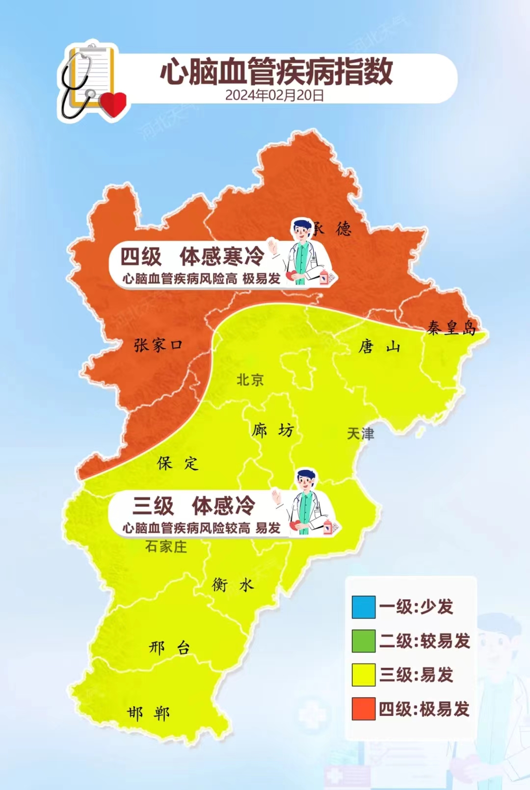 受冷空气和降雪影响,我市气温继续下降,20日最高气温仅为零下1.2℃,21日下降到零下3℃左右。寒冷天气增加了心脑血管等疾病的发病风险,正值春运返程高峰期,有高血压等慢性病的人群,路途要注意保暖,降低冷刺激造成的健康风险。老人、儿童、有哮喘等疾病人群要注意添衣保暖,预防感冒等疾病。
