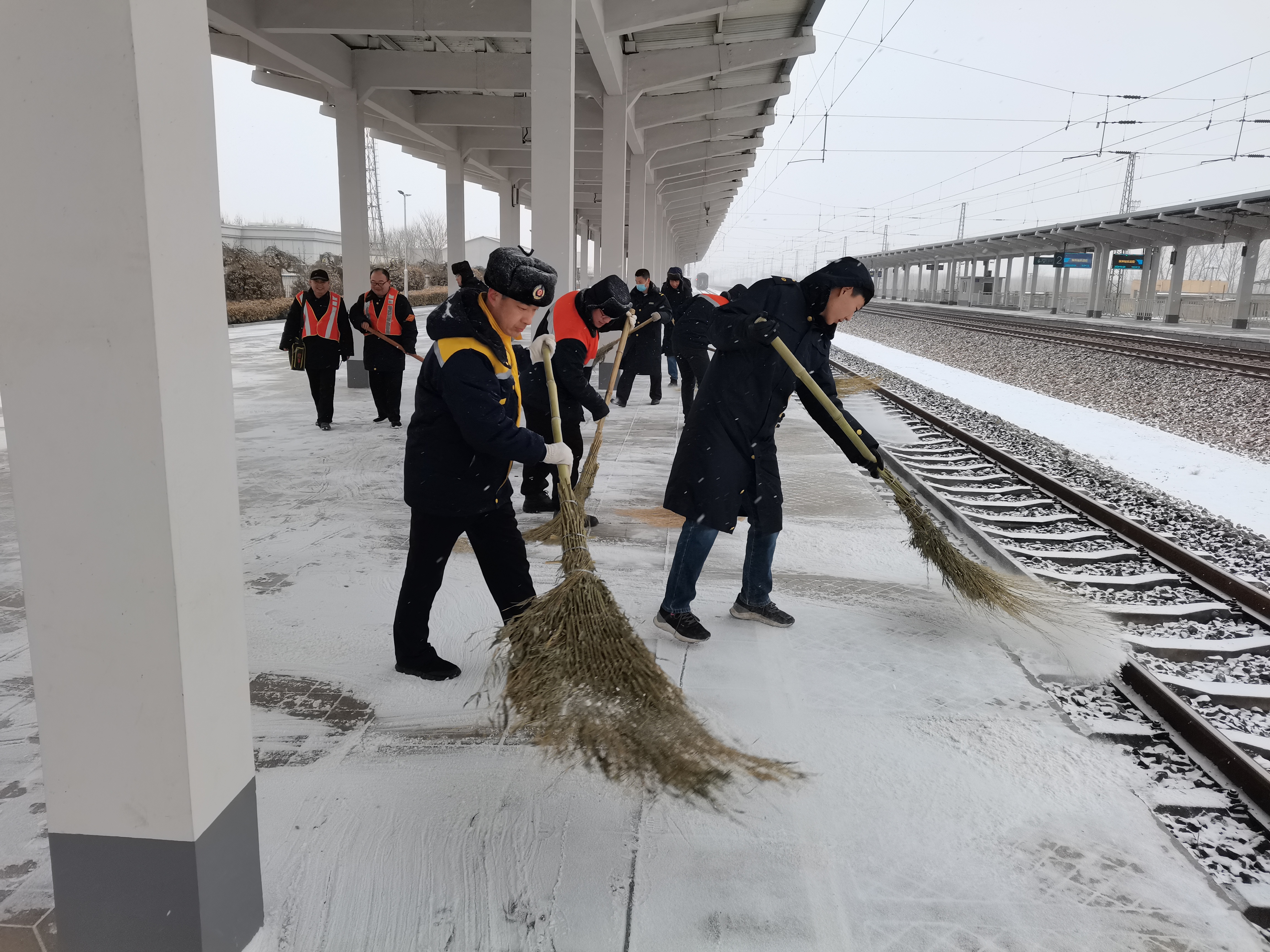 衡水站主管客运副站长周胜军介绍,此次降雪较大、持续时间长,2月20日白天本应下班休息的职工都自发没有回家,在车站会同当班人员投入到除雪保畅攻坚战中,坚持做到雪不停人不撤,随下随扫,保持旅客出行通道通畅,乘降安全。