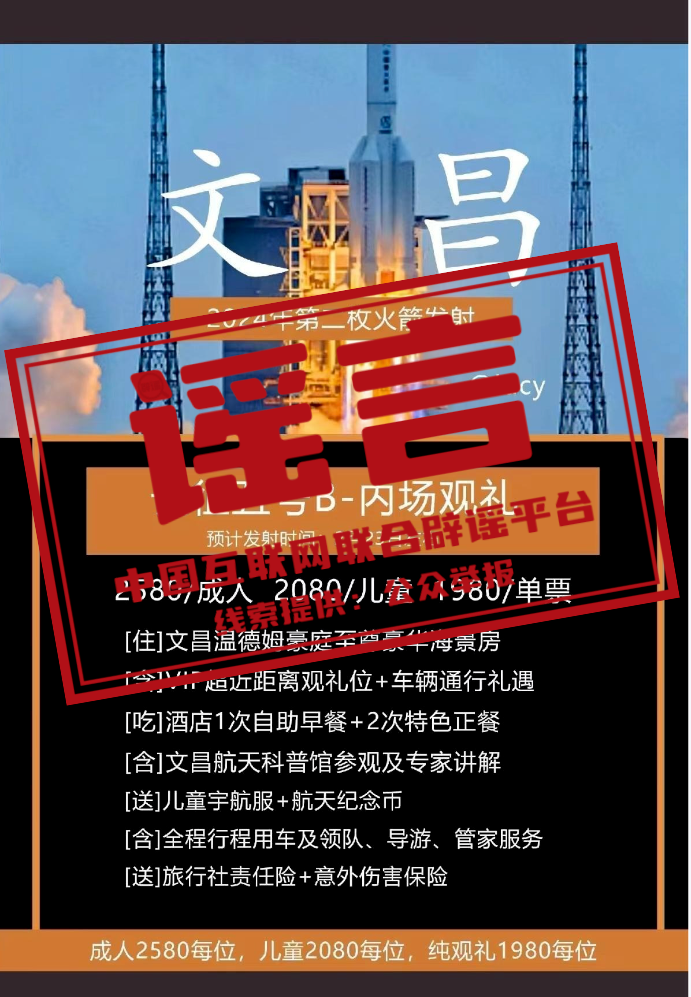 辟谣:售卖“文昌航天发射场内场火箭发射观礼门票”系虚假宣传