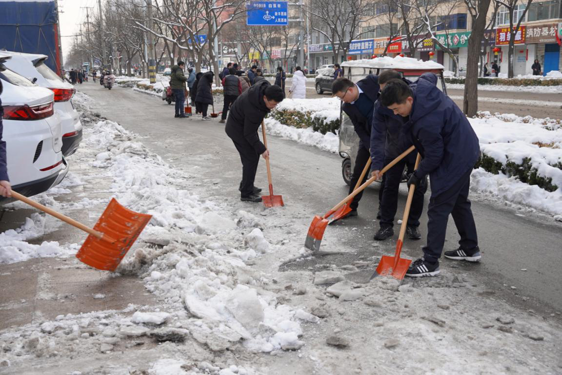 在市区和平西路,衡水移动70余名干部员工齐上阵,携带雪铲、铁锹等除雪除冰工具,对营业厅门前、停车场、便道等公共区域进行全方位清理。他们几人一组默契配合,纵然双手冻得通红,额头依旧冒着热汗,一边清扫还一边不忘提醒过往行人“小心路滑”“慢点,注意安全”,历时一个多小时,他们清理出一段又一段干净整洁的路面,“好久没有这么畅快的劳动了,不过看着大家在这段路上行走、骑车不用再小心翼翼了,累得腰疼也值了。”小王一边擦汗一边说着。