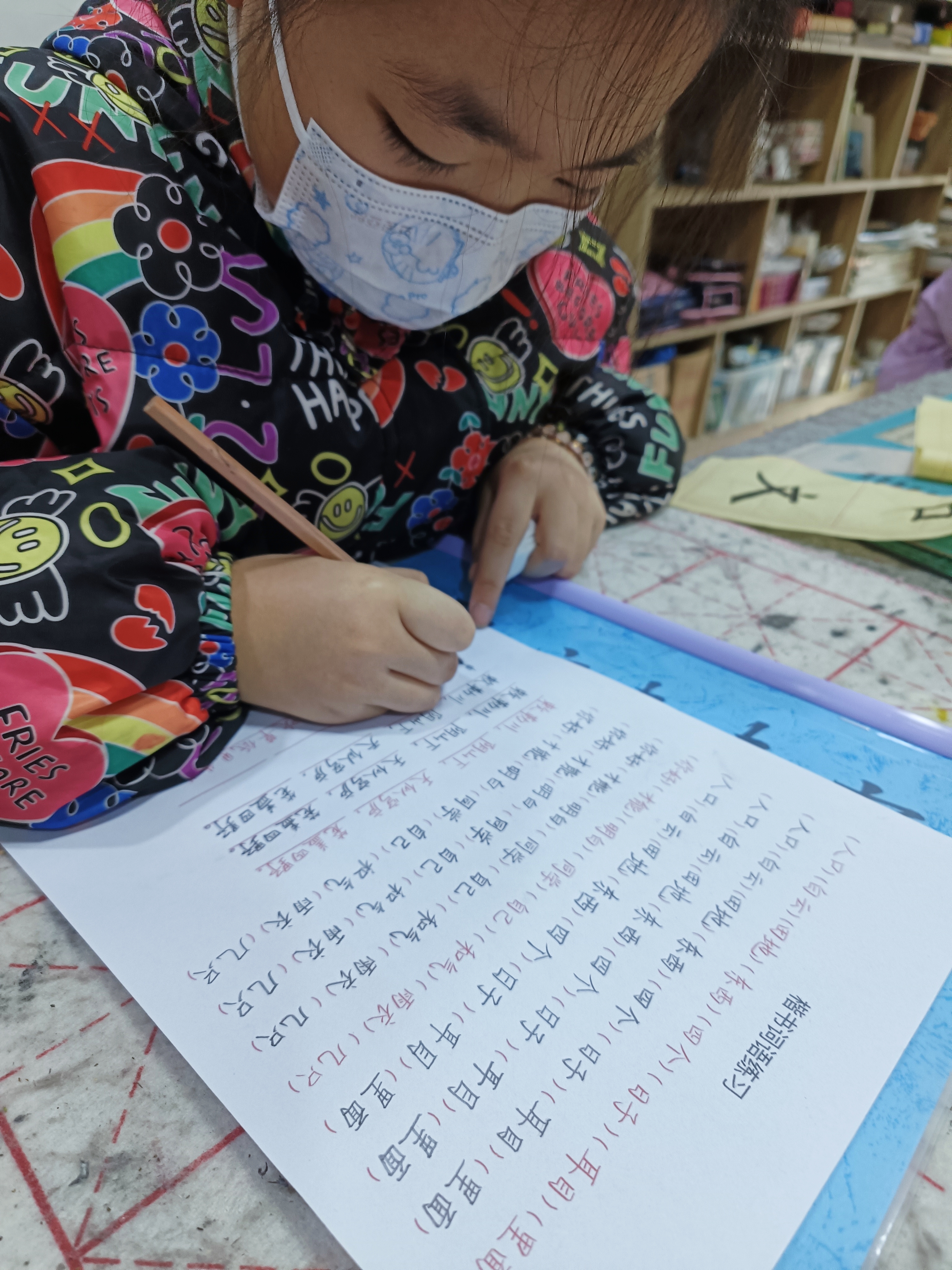 活动现场,张中阳为孩子们介绍了美术创作的构图技巧、颜色的搭配及色彩的运用等知识。他一边给大家作示范,一边耐心指导孩子们动手体验。只见孩子们手执毛笔,调色、上墨,一笔一画,一板一眼,学得非常认真。前来学习的孩子季佳娴高兴地说:“老师给我们讲解了很多关于绘画、书法方面的知识。我会好好练习,充实自己的寒假生活。”