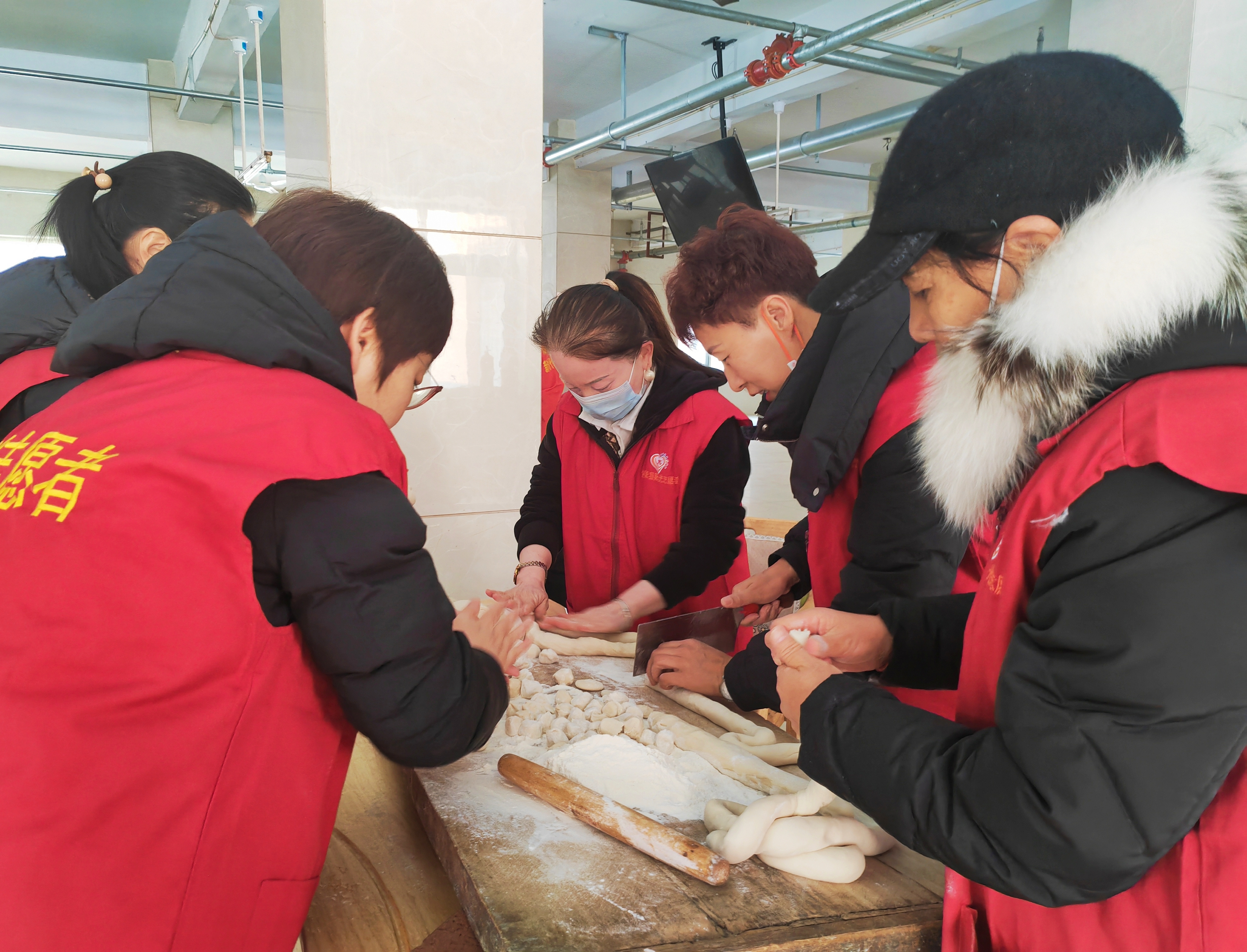 这边演出活动举办的热闹非凡,那边包饺子开展的热火朝天。揉面、择菜、剁馅,分工有序、紧密配合,大家一边干活,一边边聊天,敬老院顿时变得热闹起来,空气中弥漫着饺子的香味,到处是老人与志愿者的阵阵欢笑声。