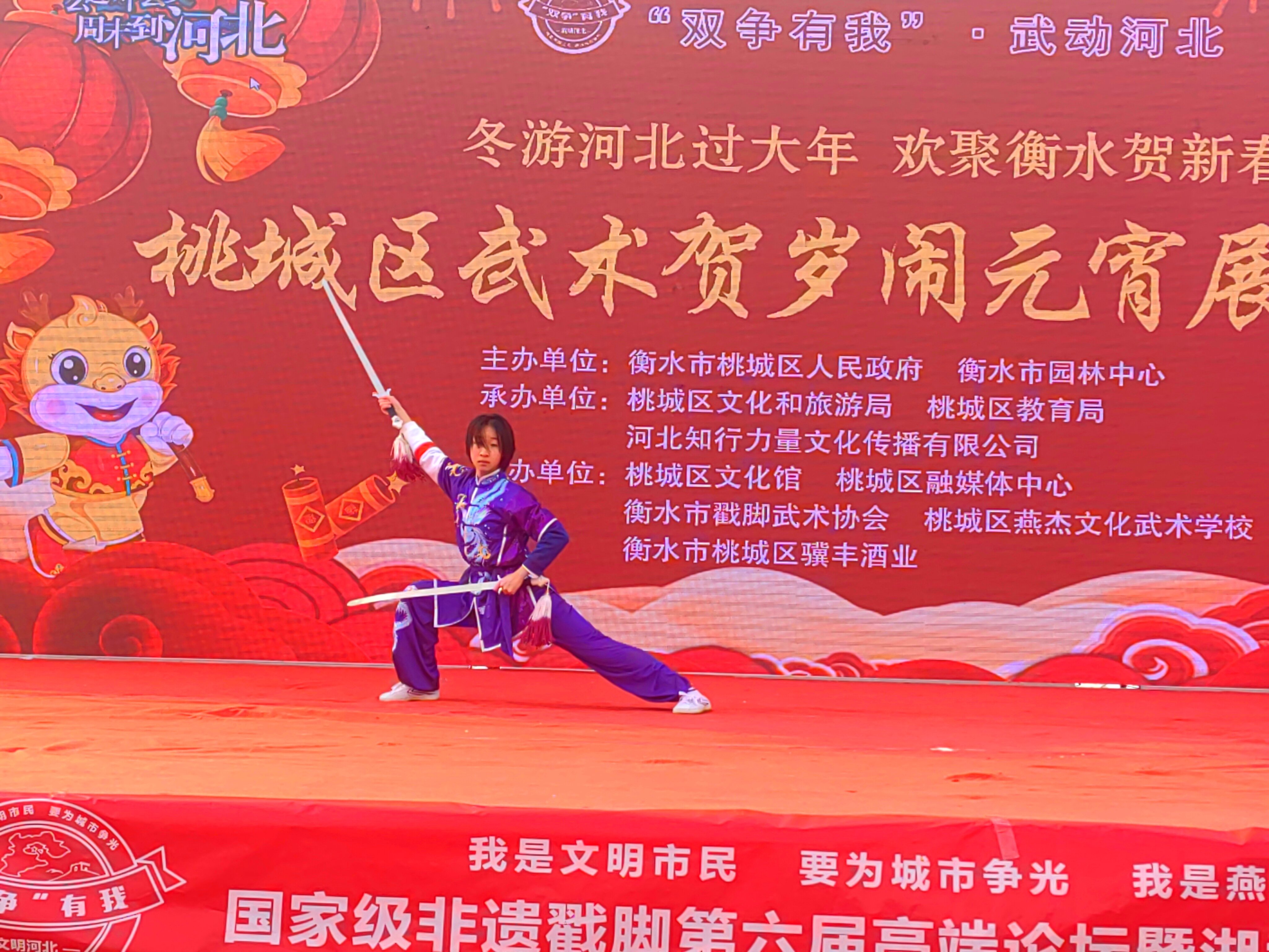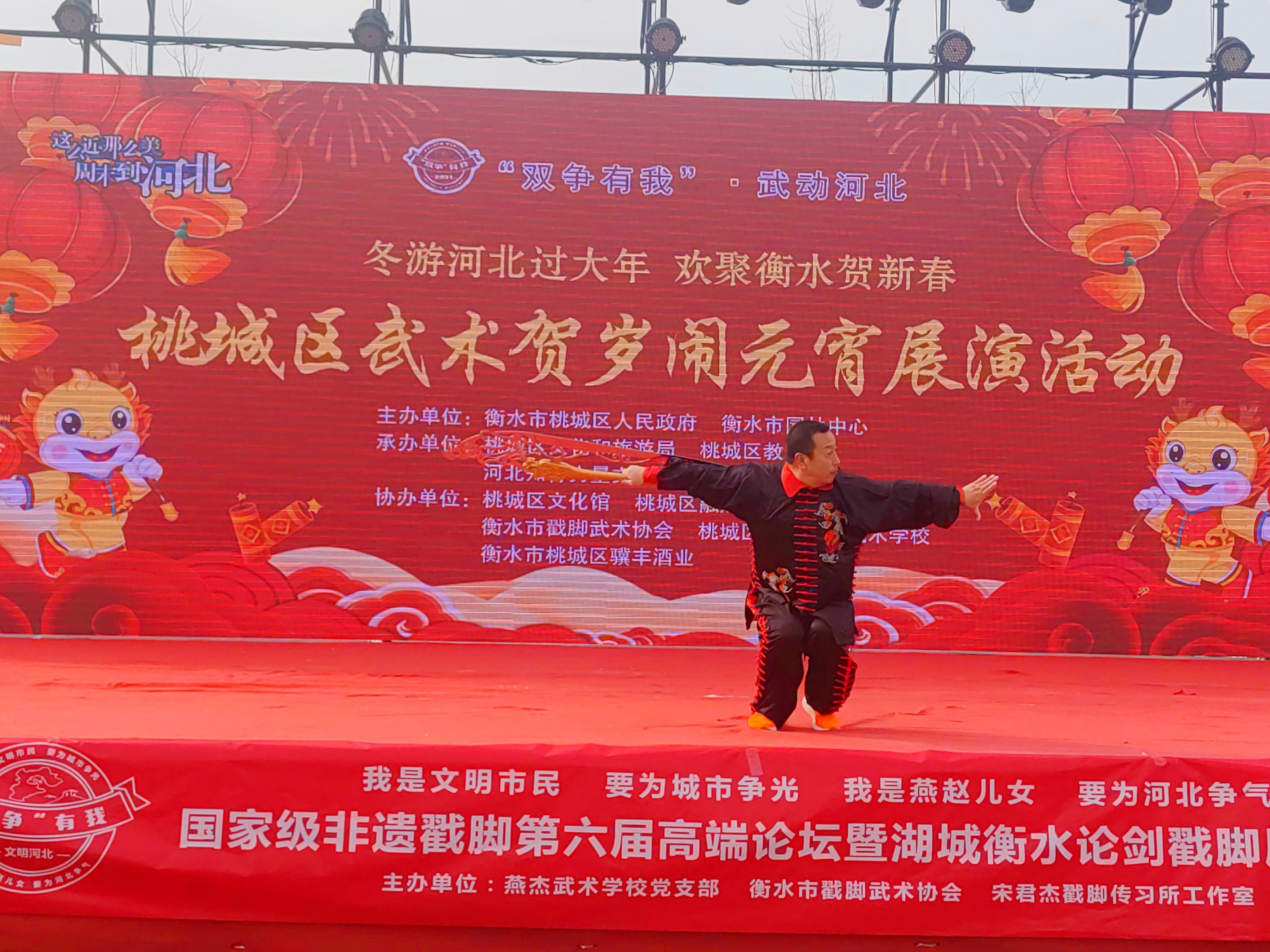 为进一步提高桃城区非物质文化遗产项目的知名度、美誉度和影响力,提高人民群众的非遗保护意识,营造欢乐、祥和、喜庆的中国年氛围,2月24日(正月十五),桃城区武术贺岁闹元宵展演活动在宝云公园大舞台举办。
