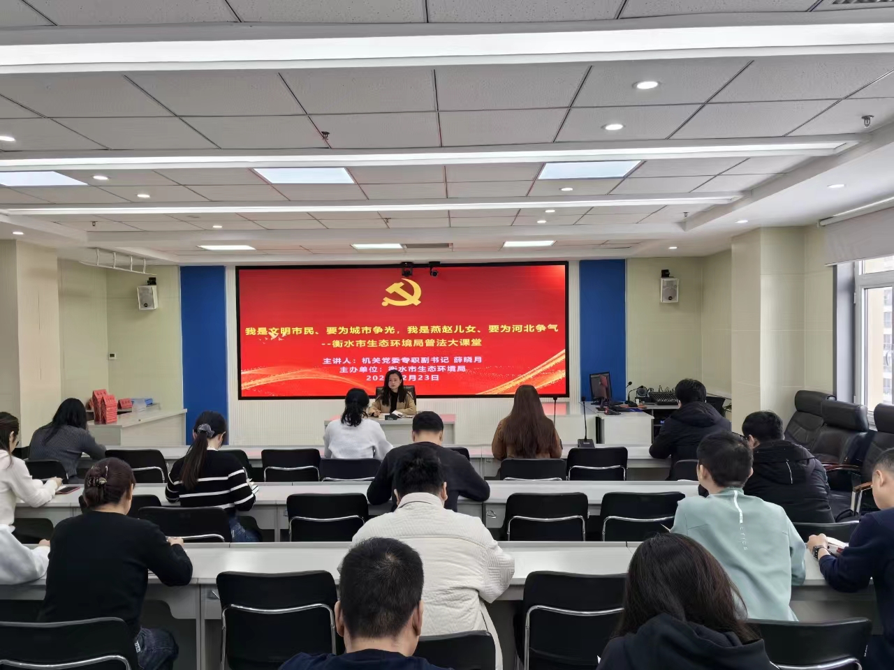 2月23日,衡水市生态环境局面向党员干部开展了“我是文明市民、要为城市争光,我是燕赵儿女、要为河北争气”普法大课堂活动。