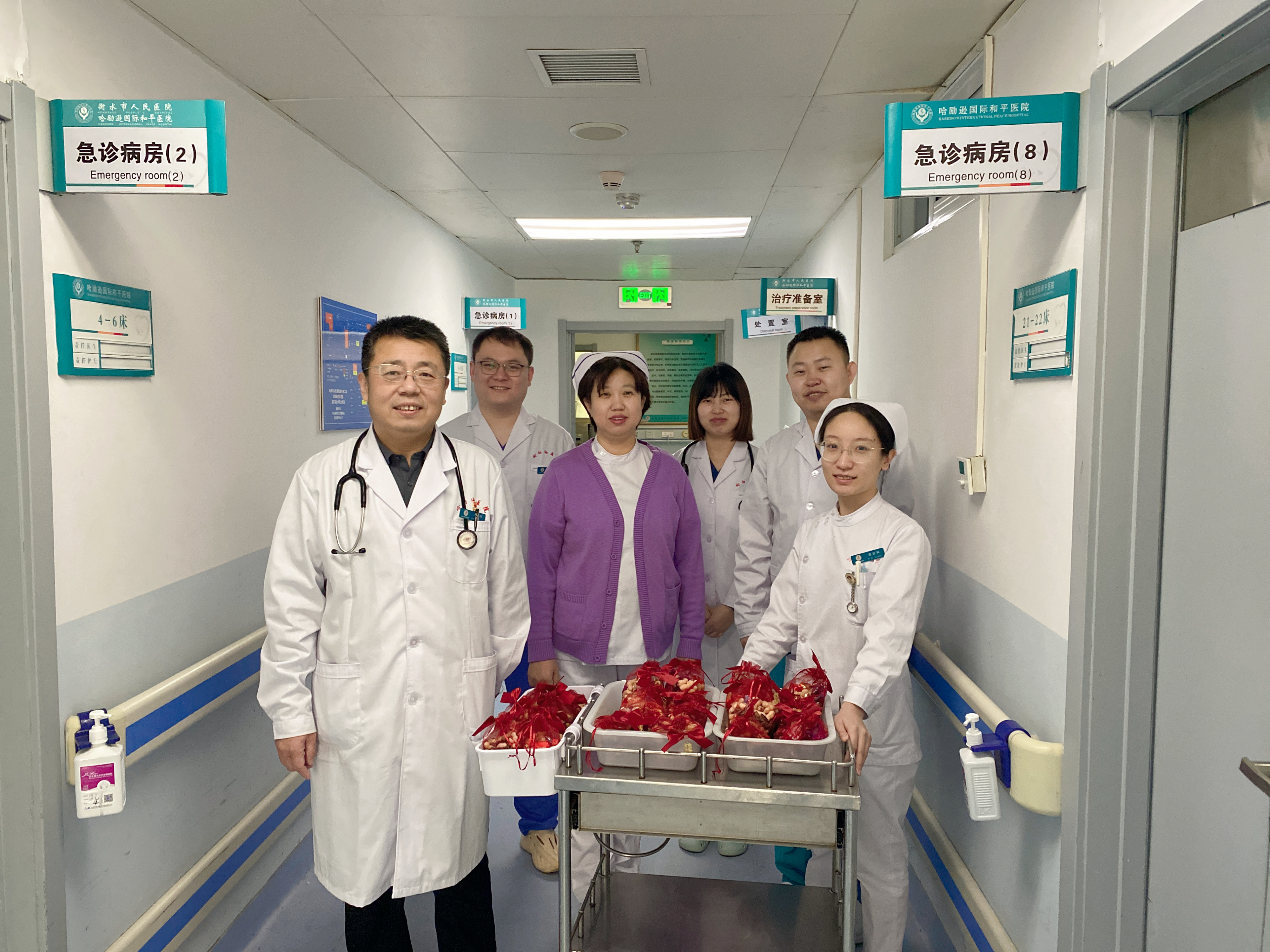 哈院急诊科作为河北省临床重点专科、河北省医学重点学科,强有力承担着冀东南地区重大灾害、伤亡事故、日常急危重病人的现场抢救、途中医疗监护、院内急诊抢救、社会公益活动急救保障等医疗服务,带动着衡水急救医学整体水平的发展与提高。图为急诊科负责人王璞带领医护人员为春节期间住院患者送去礼物。
